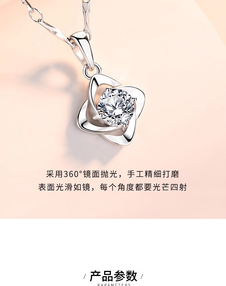 VZZSElonna Alona Moissanite Four-leaf Clover Necklace Women's 18k Color Gold Clavicle Chain Pendant Valentine's Day Gift Silver Necklace (Adjustable Chain Length)