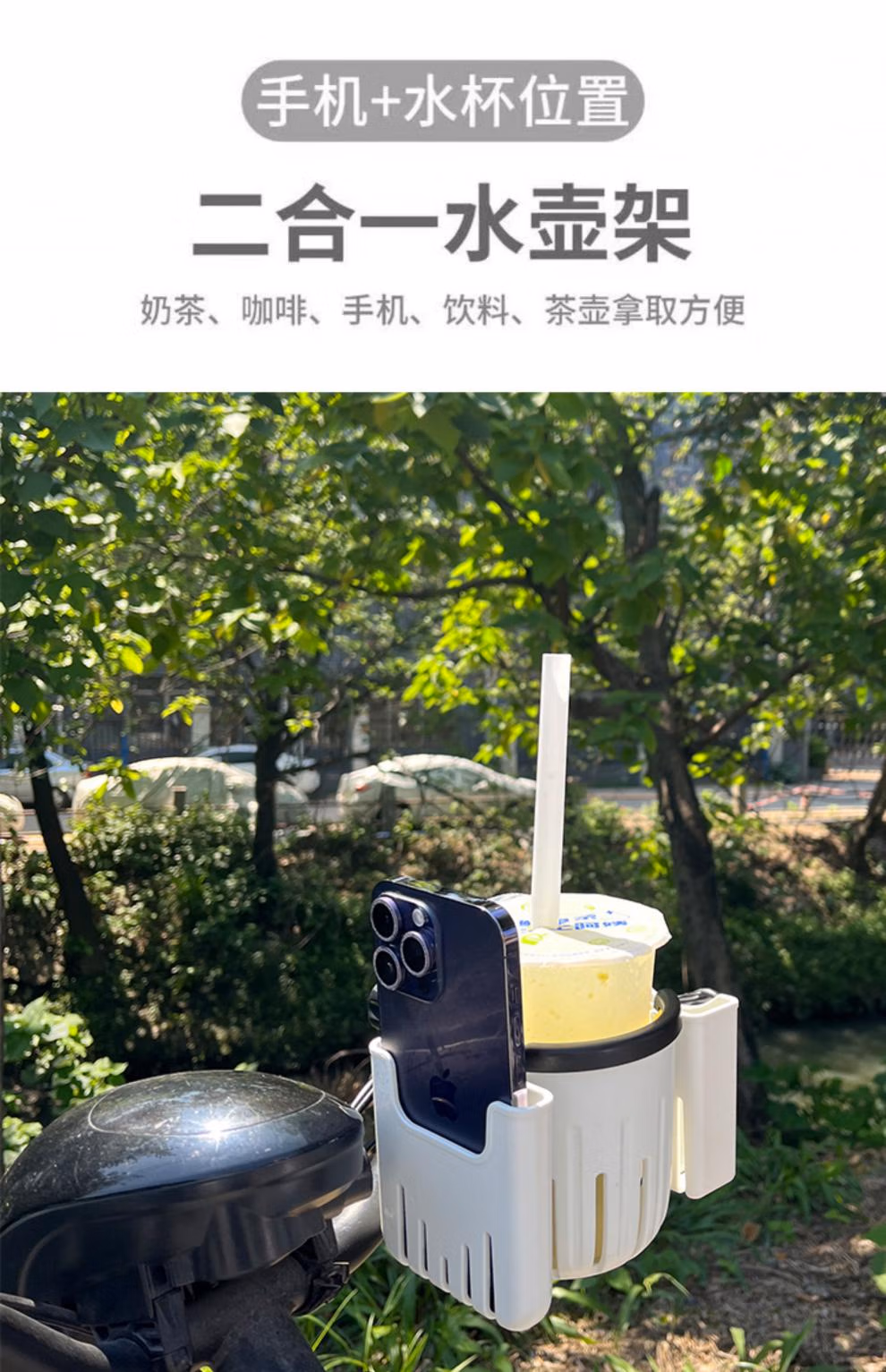 Zhizhou electric vehicle water cup holder mountain bike water bottle holder two-in-one punch-free tea cup for infants white + yellow + mobile phone holder