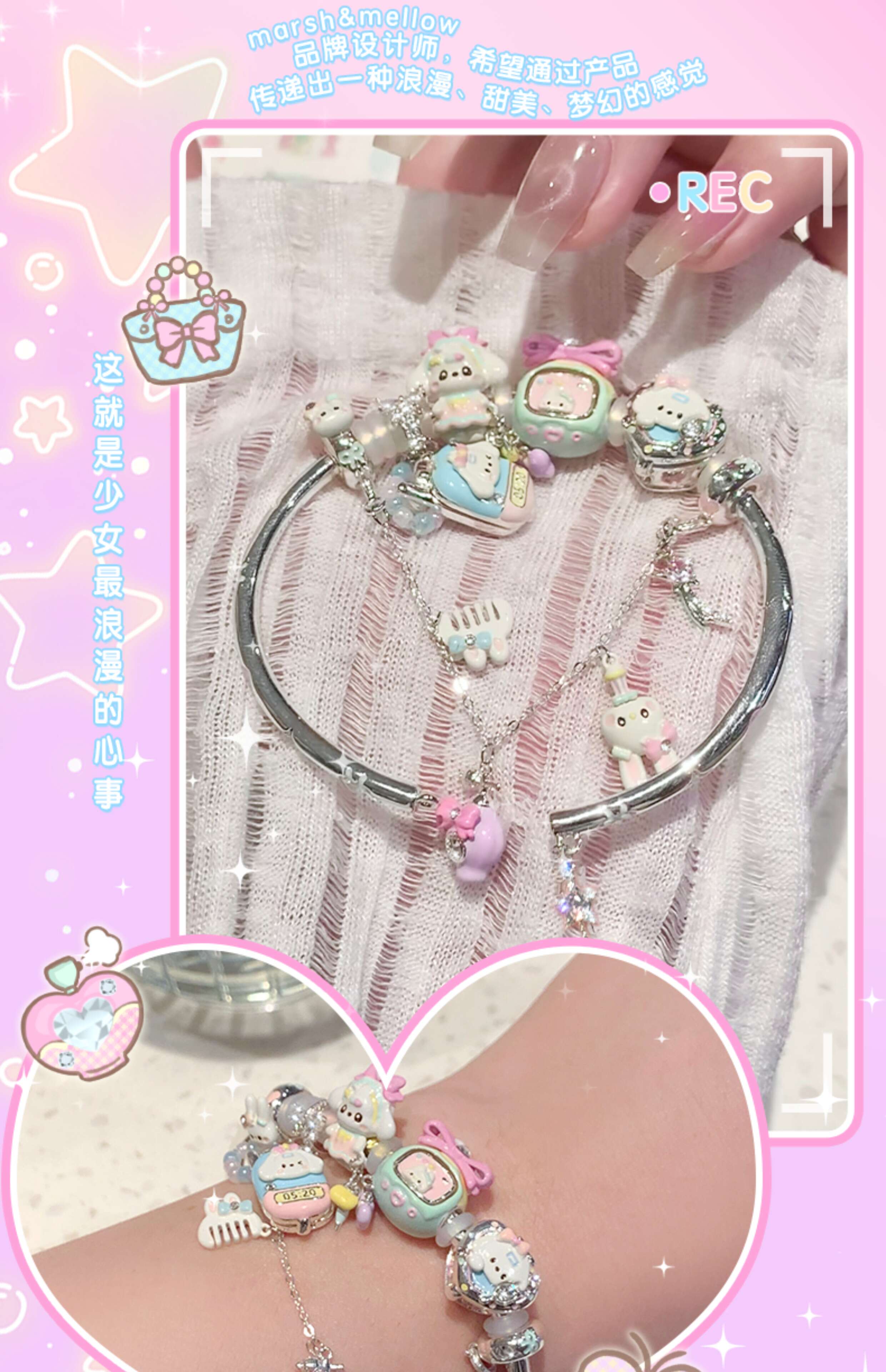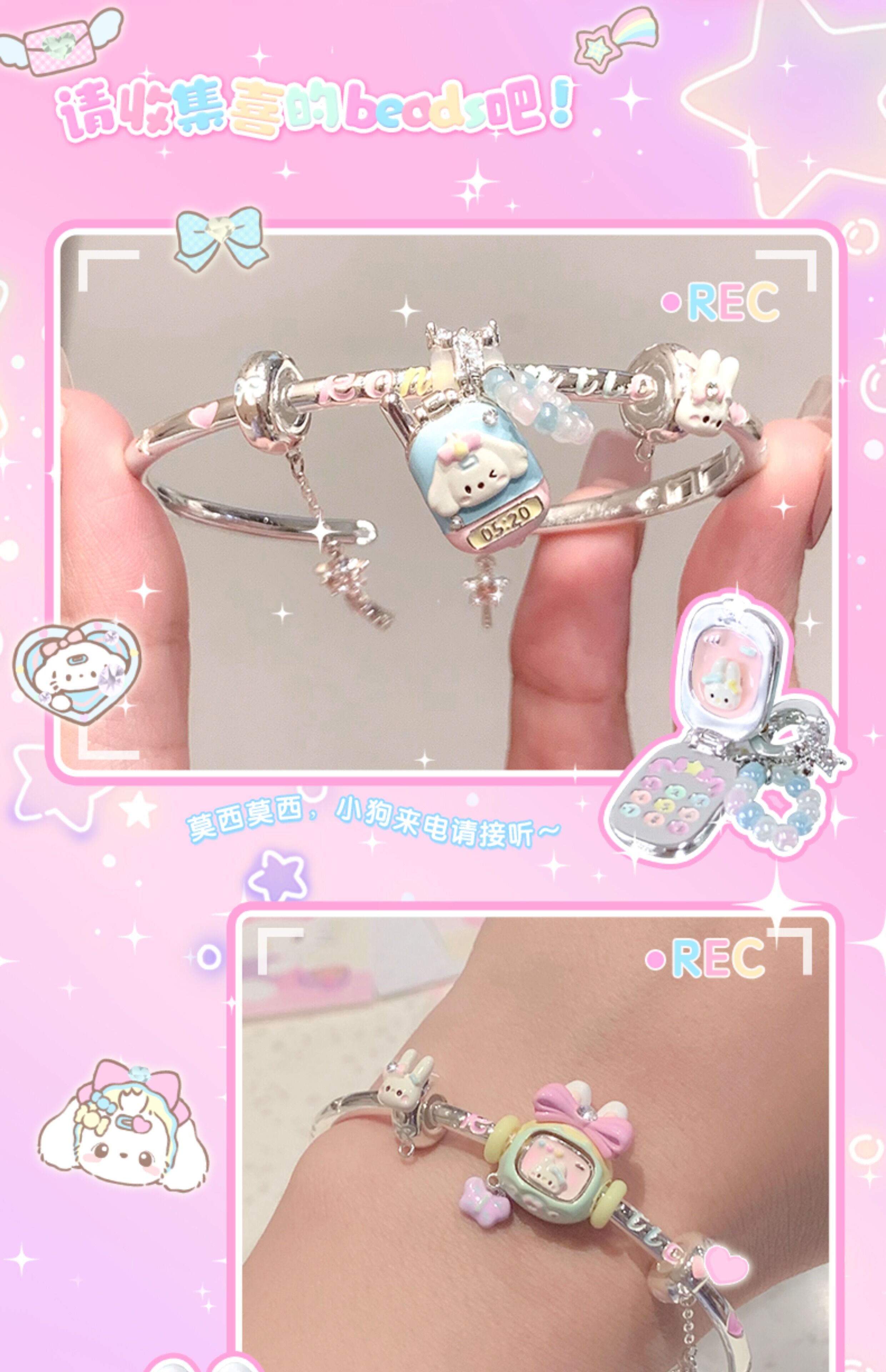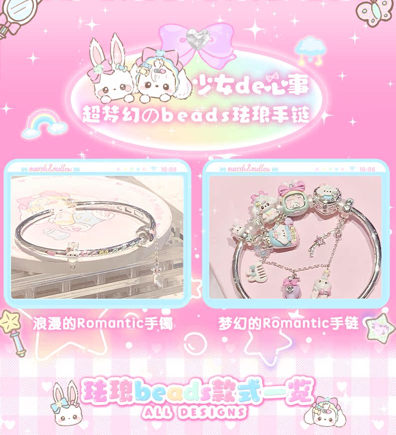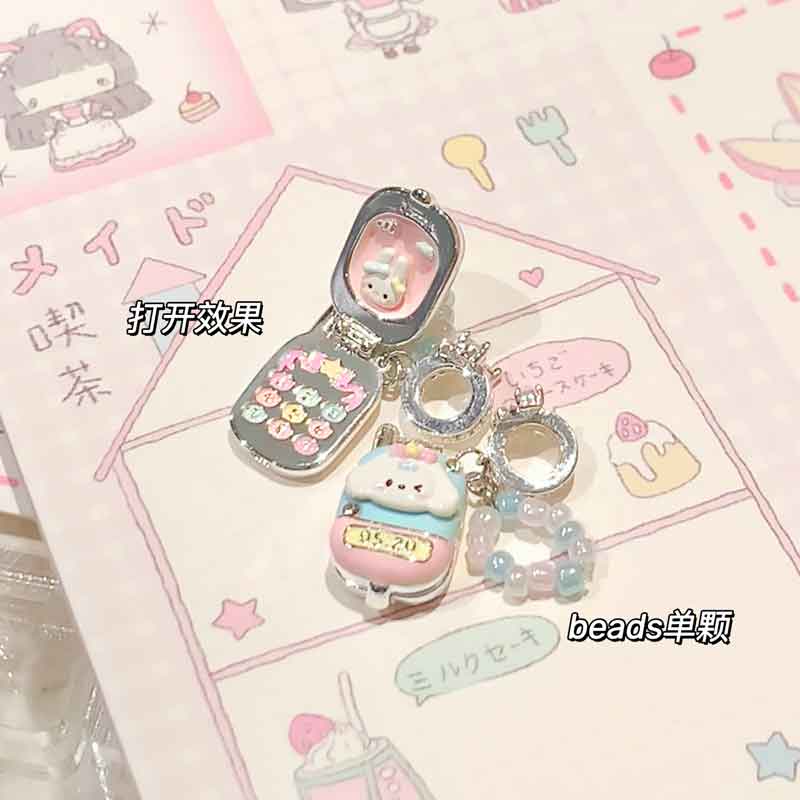Libiao marshmellow jewelry store beads enamel silver-plated bracelet bracelet stacked girls bead jewelry romantic flip small mobile phone (individual beads are not included