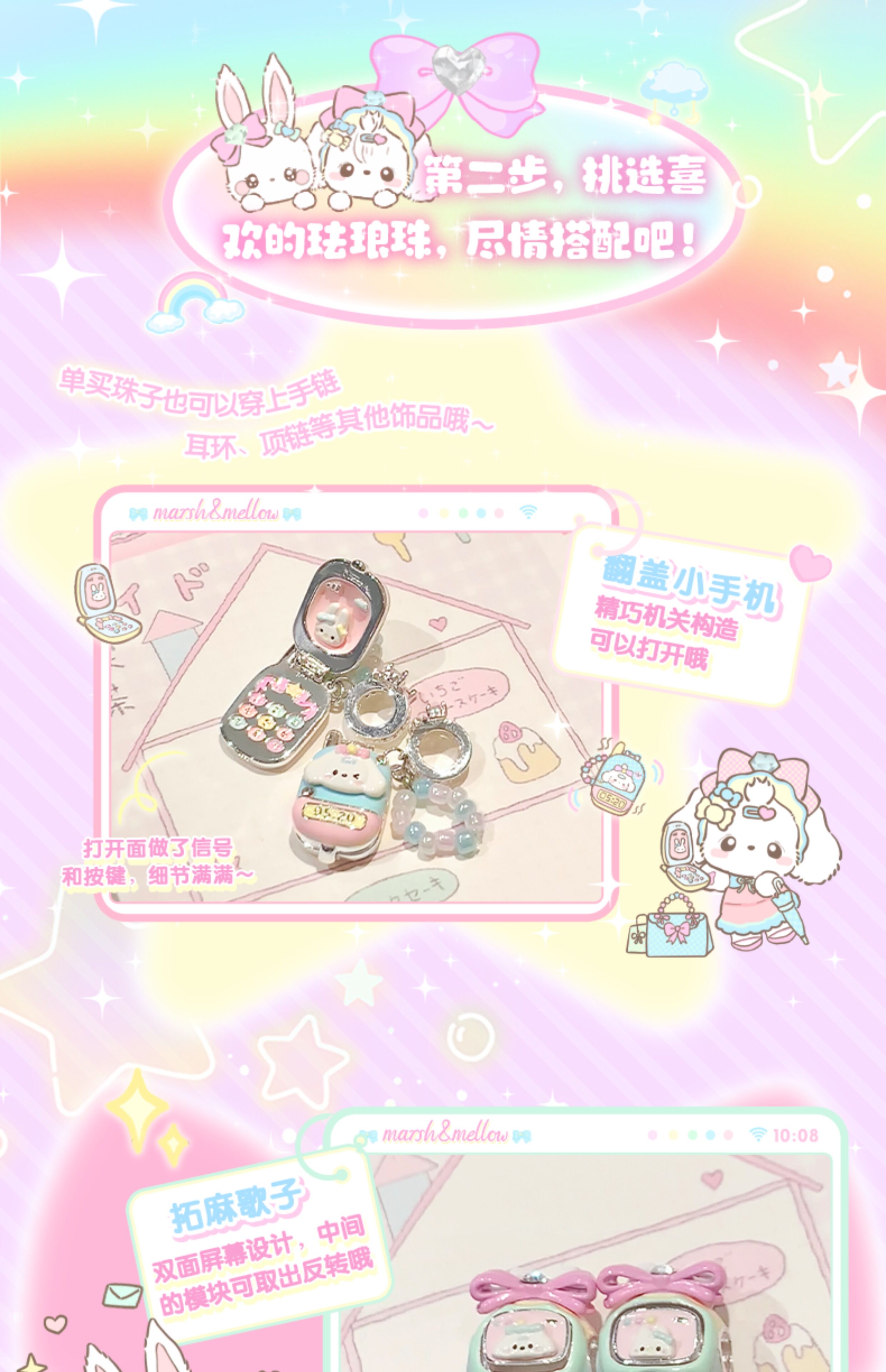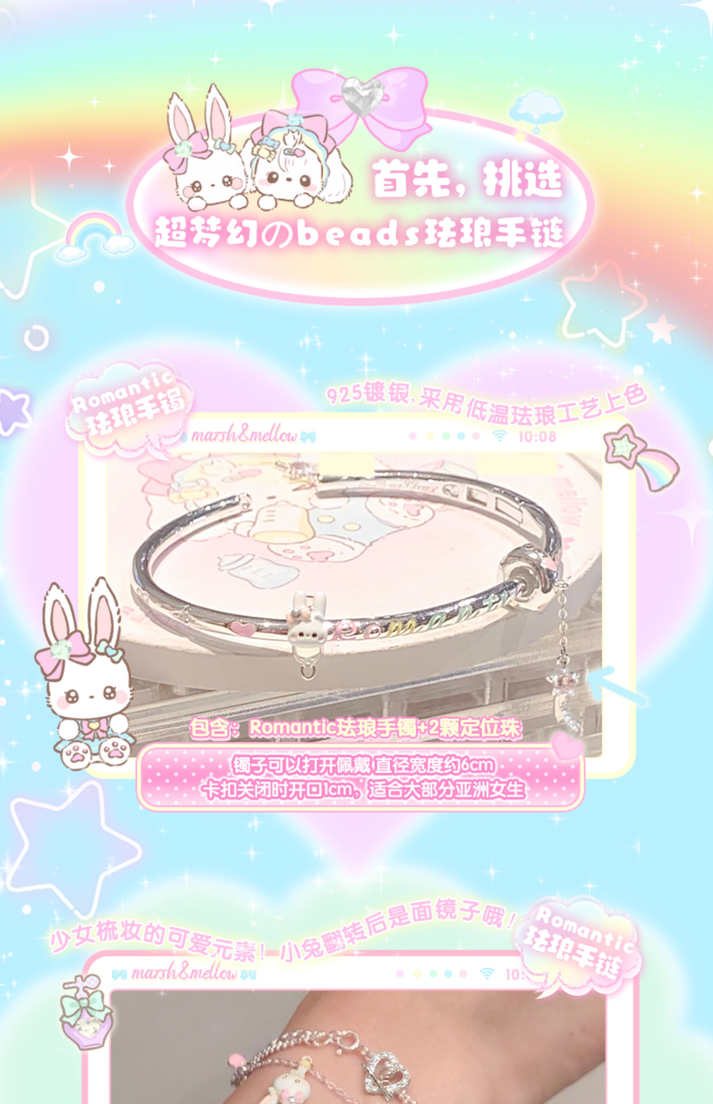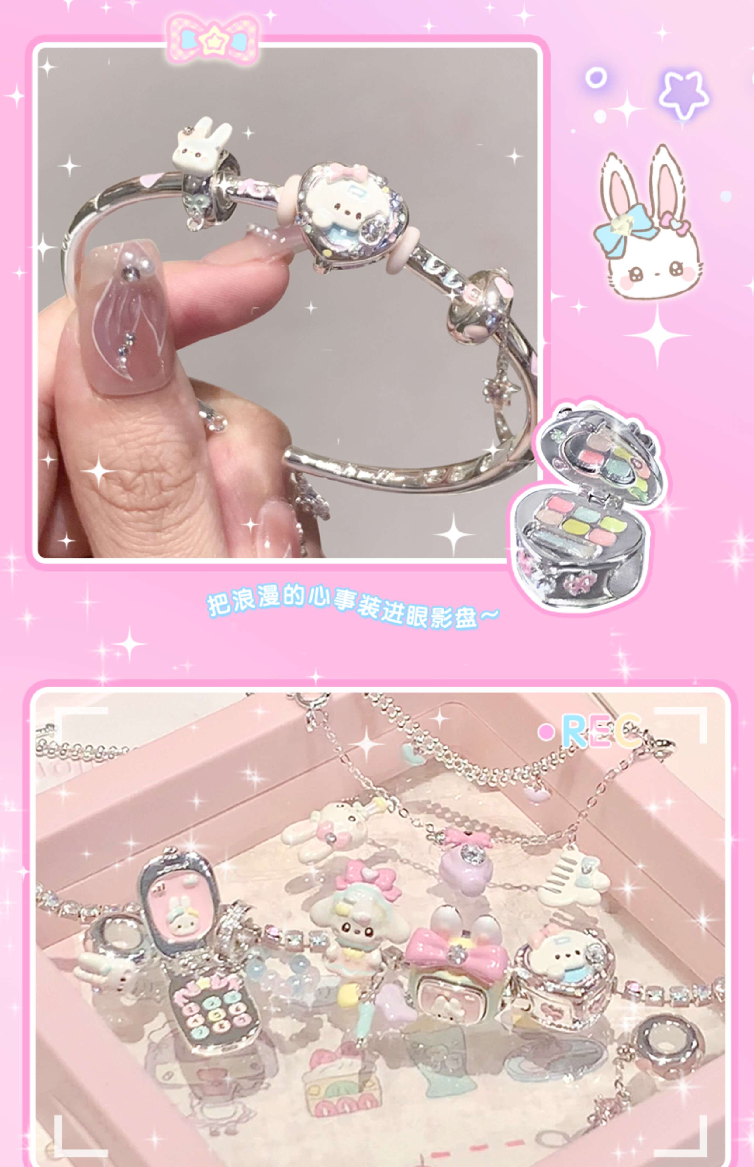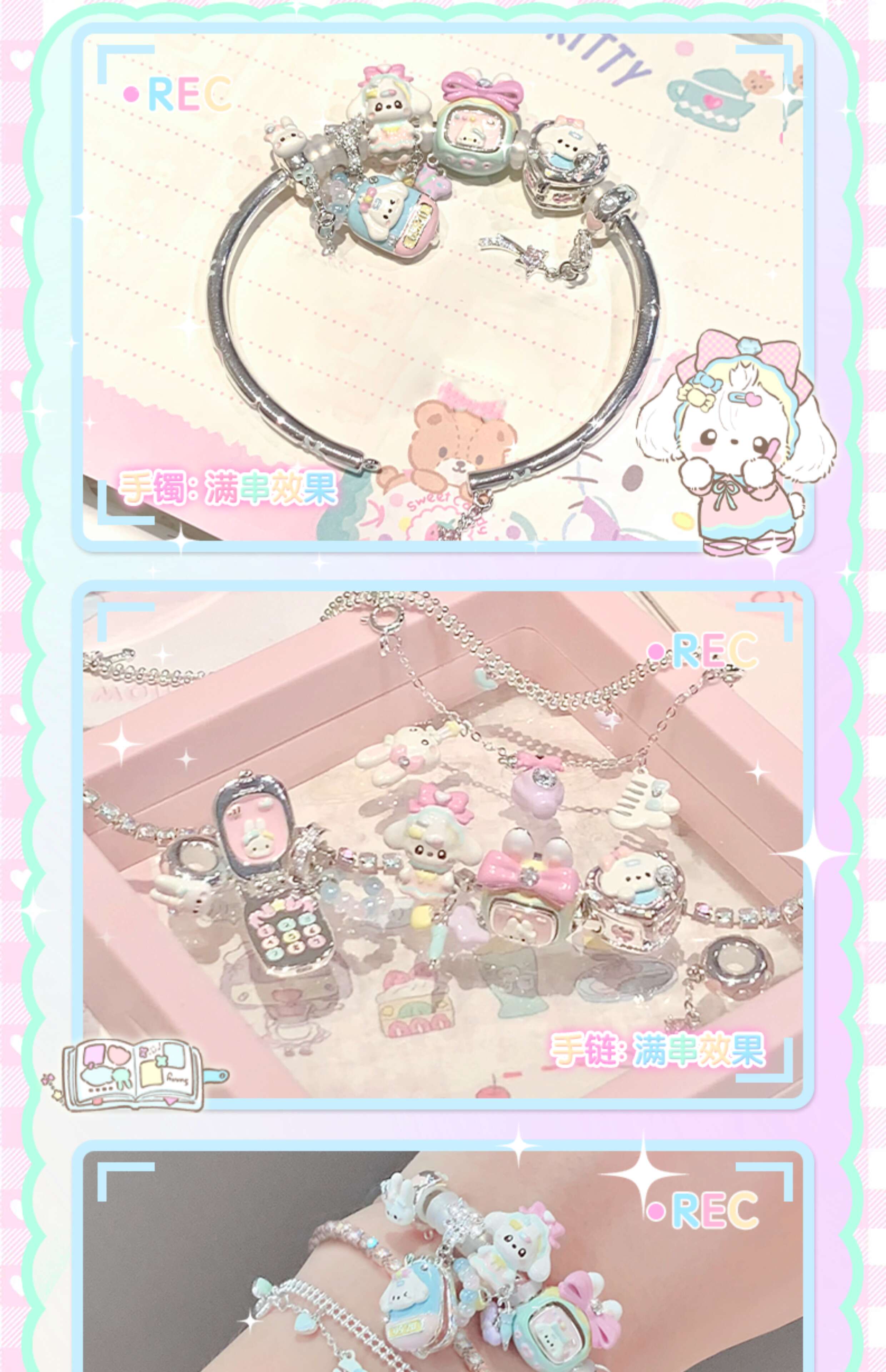 Libiao marshmellow jewelry store beads enamel silver-plated bracelet bracelet stacked girls bead jewelry romantic flip small mobile phone (individual beads are not included