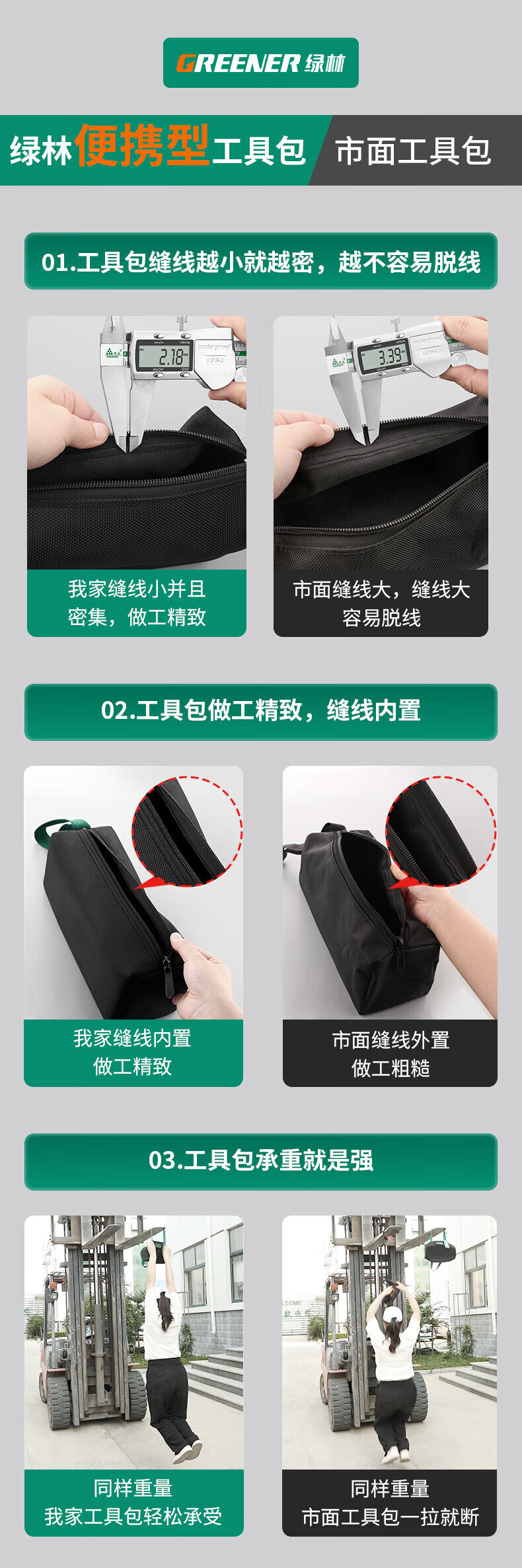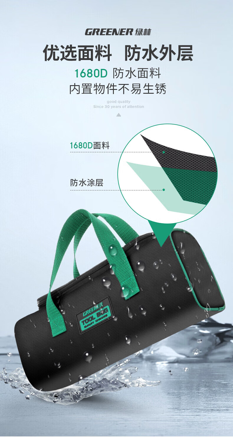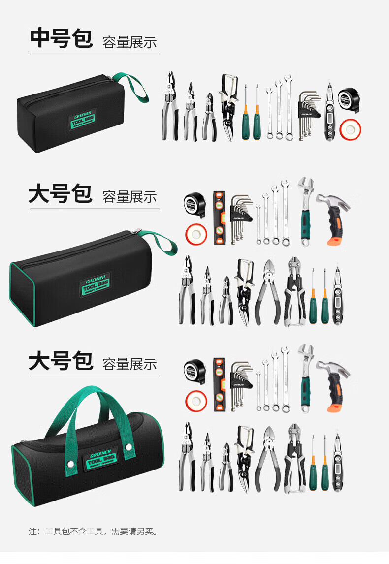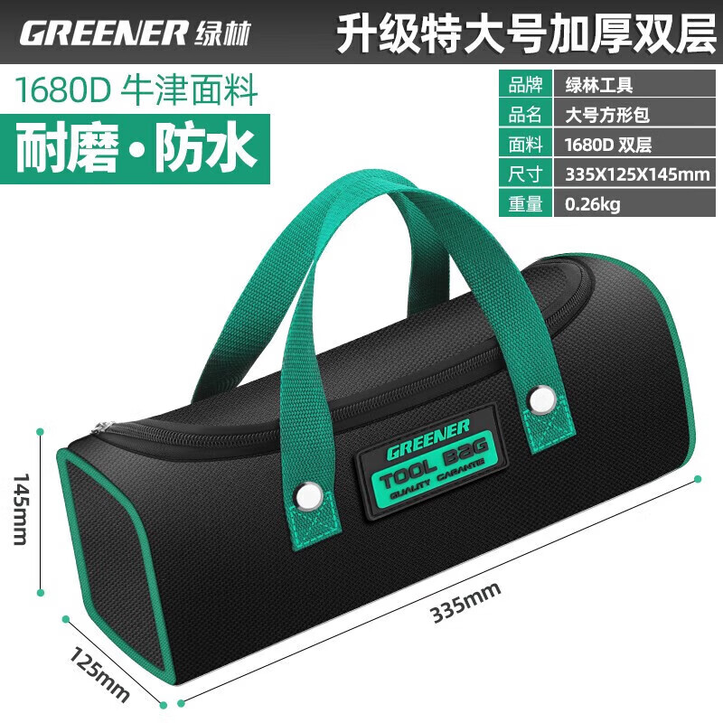 GREENER Tool Bag is a sturdy and durable thickened Oxford cloth electrician bag and special portable handle for woodworking storage. Medium double layer portable tool bag.