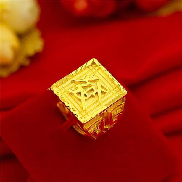Chuxu extra large real sand gold men's ring men's ring gold color sand gold ring does not fade domineering wealth dragon horse hair word 16*18 mm