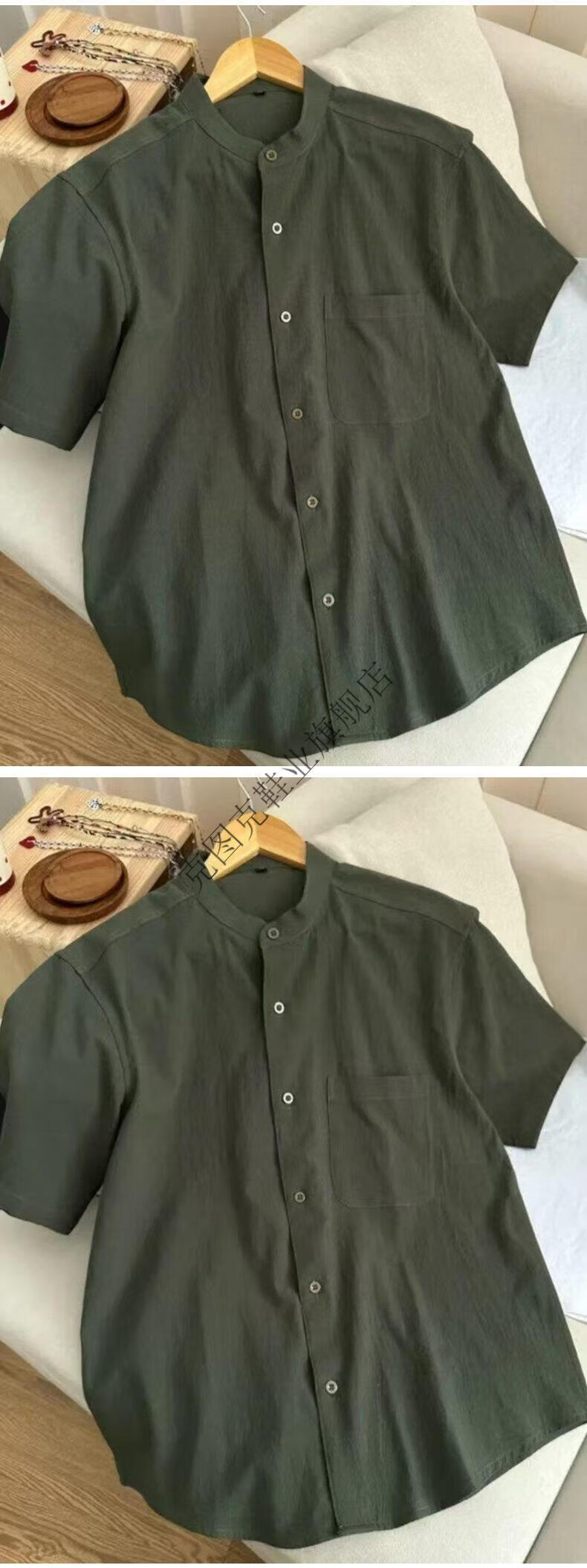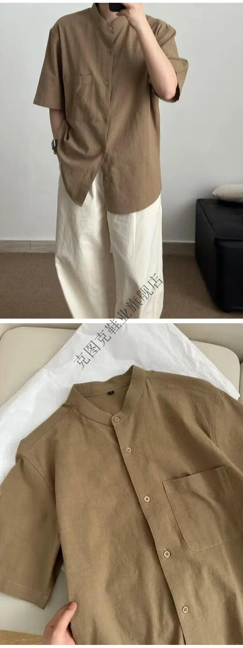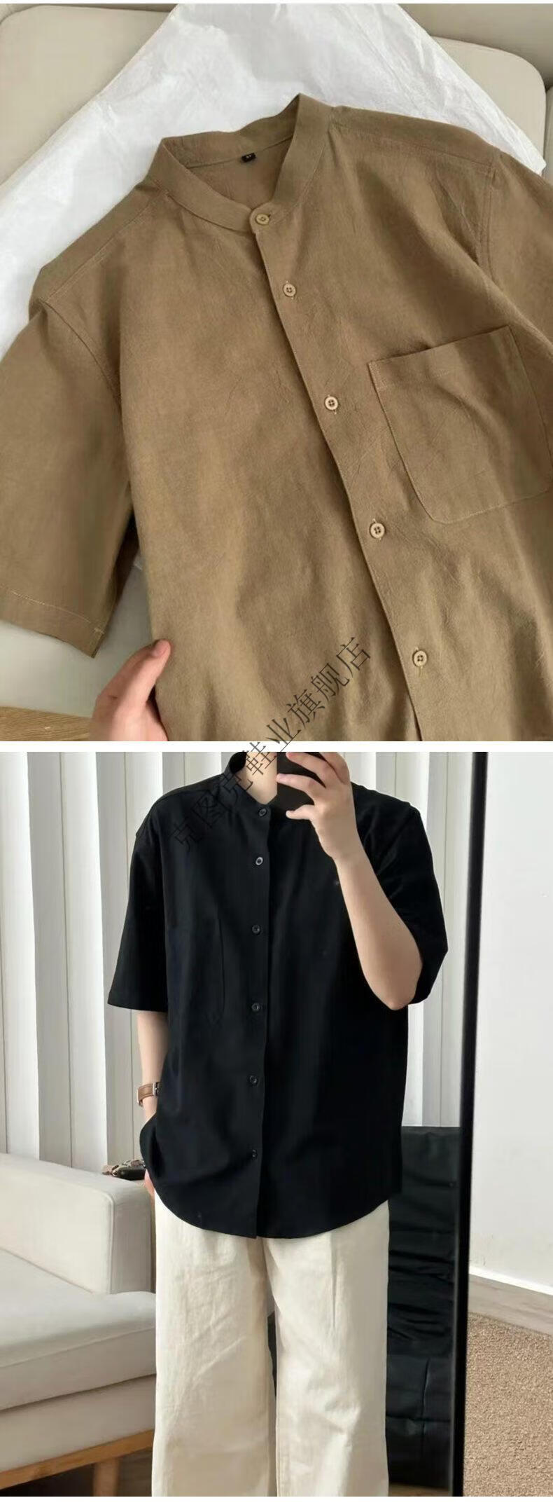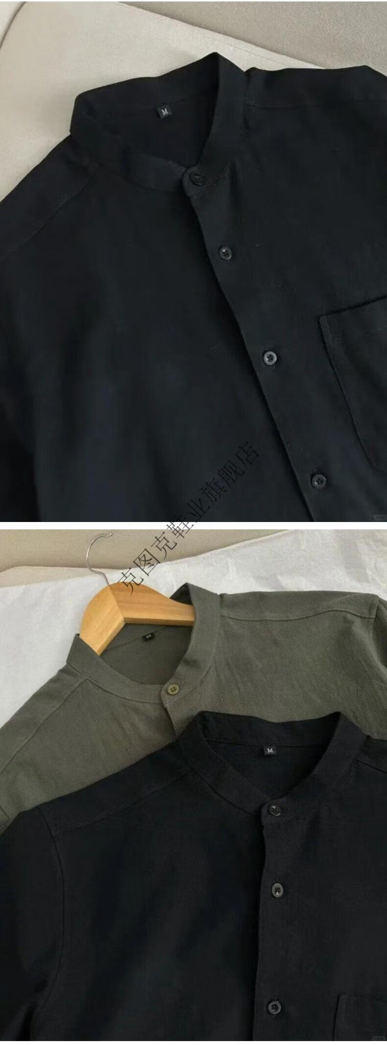 Ketuk new Chinese style cotton and linen textured short-sleeved shirt for men and women Henry collar cardigan shirt summer retro lazy jacket black L