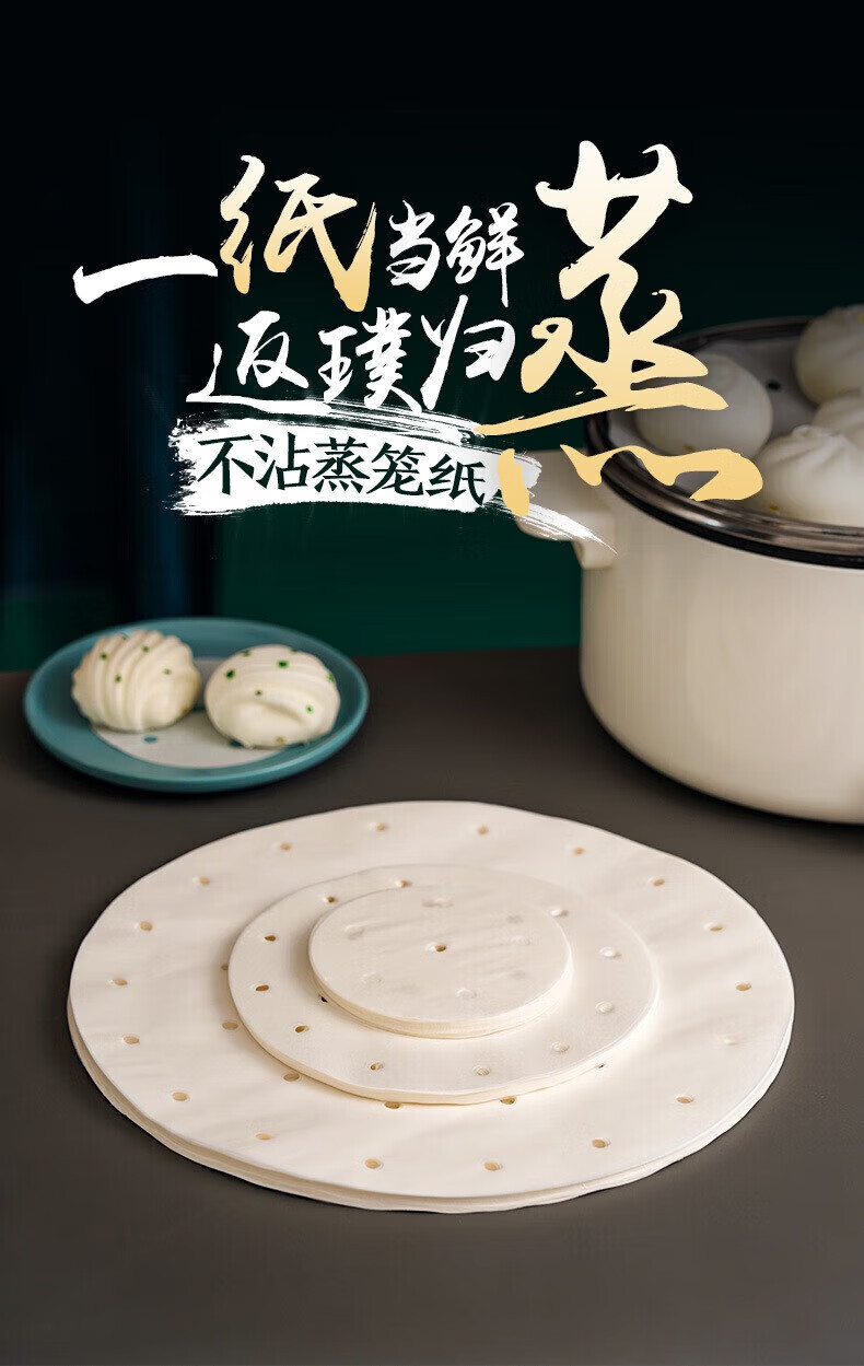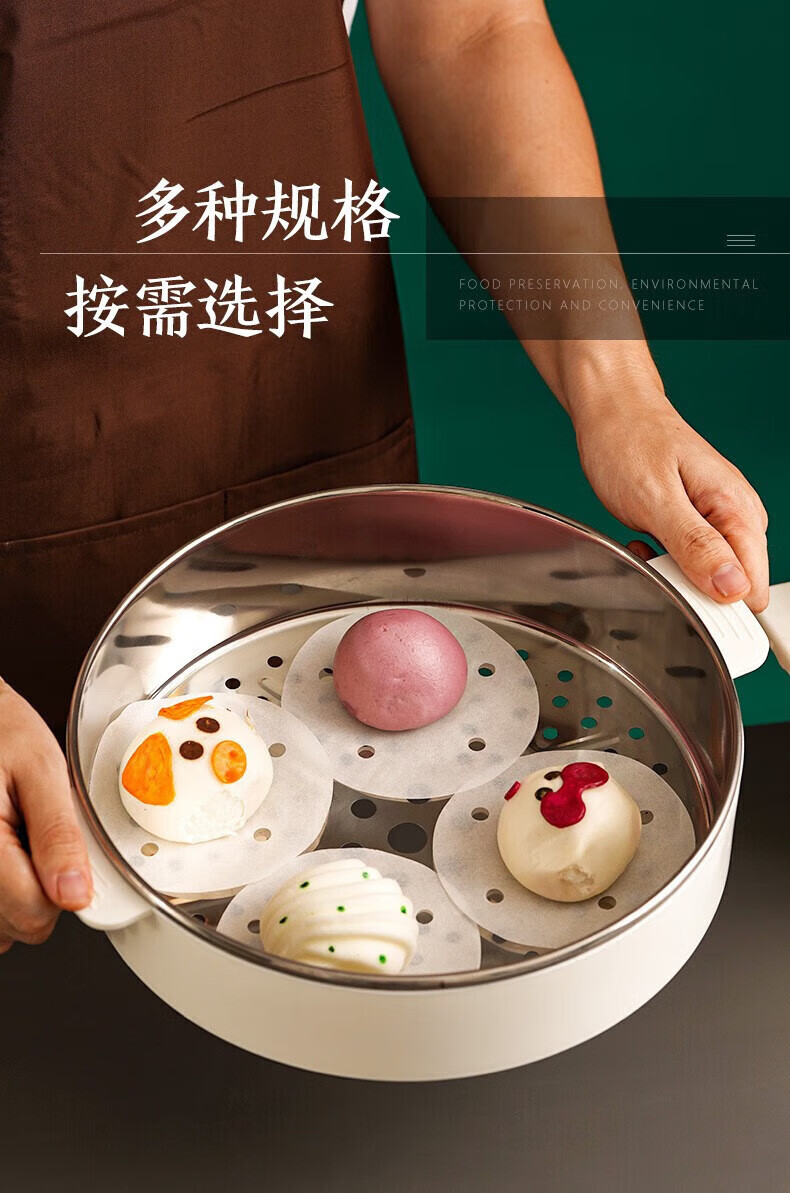 Steamer paper food grade non-stick steamed bun pad paper steamed bun paper disposable size can replace the steamer cloth natural color diameter 9cm 200 sheets steamer paper