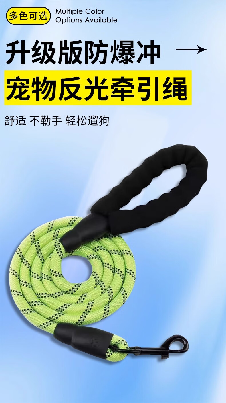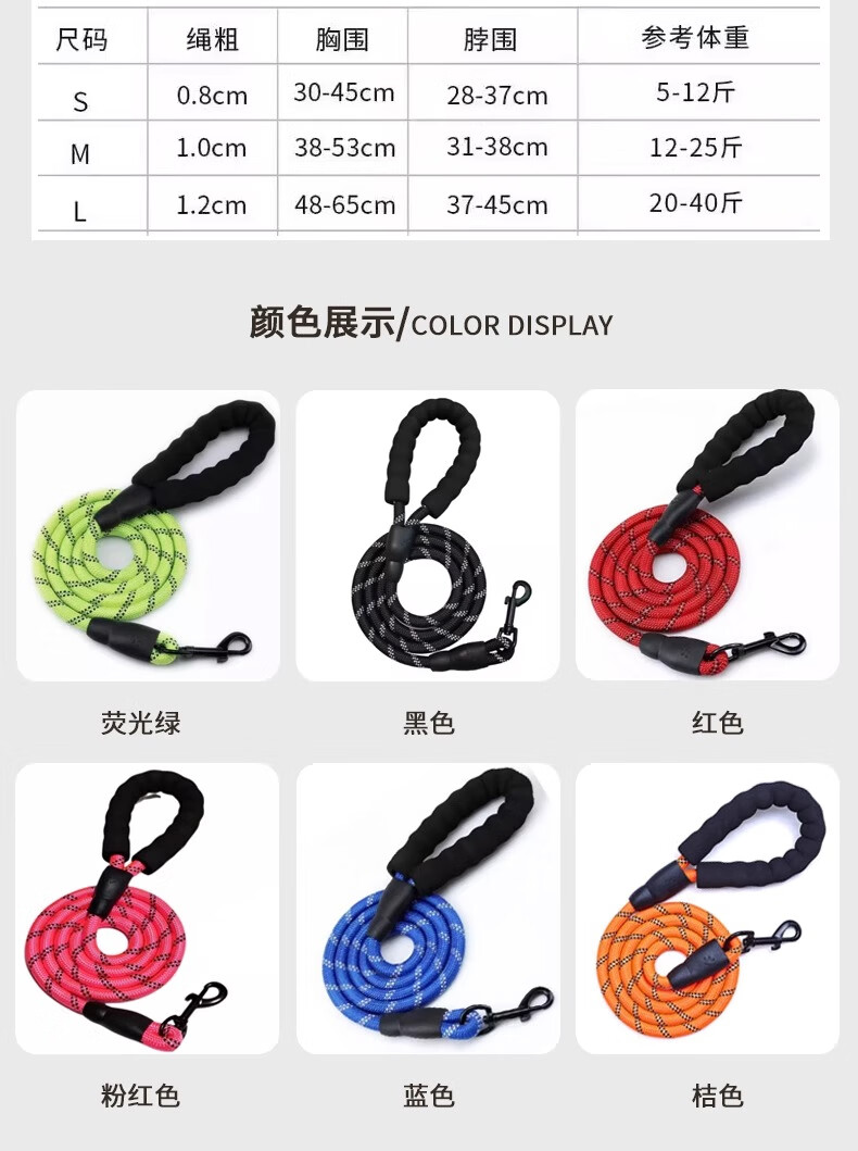Pet explosion-proof reflective traction rope, dog walking rope, dog leash, cat round rope, large, medium and small dog pet supplies, reflective traction rope-grey 1.2*2m-1 piece