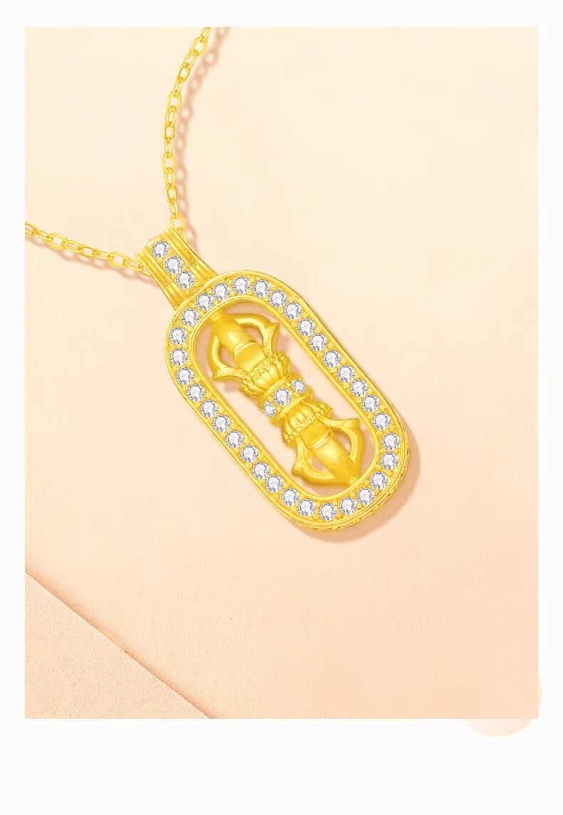 CHINA GOLD 18K Gold Vajra Pendant Women's K Gold Necklace Light Luxury Valentine's Day Practical Birthday Gift for Girlfriend and Wife 18K Gold Vajra Pendant Free Pure Silver Chain Approximately 0.4g Gram weight is the total weight of the product K gold weight + topaz/others