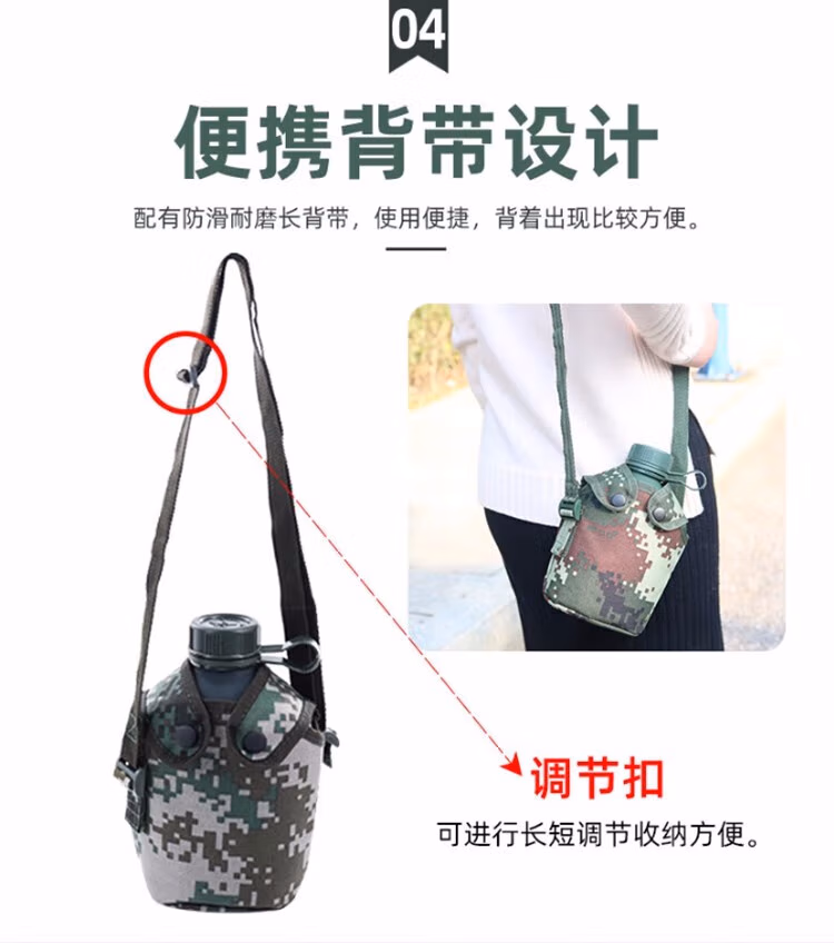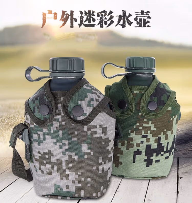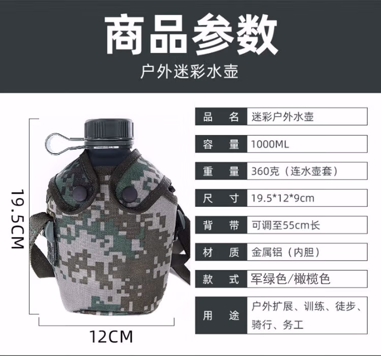 New camouflage kettle made by Jingying Military Fans Tactical Outdoor Mountaineering Portable Marching Military Training Kettle Large Capacity Shoulder Bag 10 Military Green Aluminum Kettle + Bottle Cover/Capacity 1000ML
