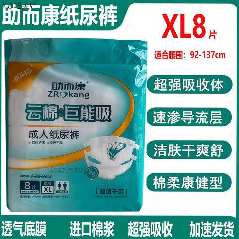 Zhuerkang Adult Diapers Elderly Diapers XL Size 8 Pieces Elderly Incontinence Pants Adhesive Diapers Price for Two Packs