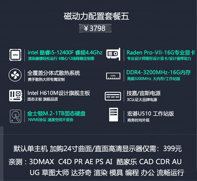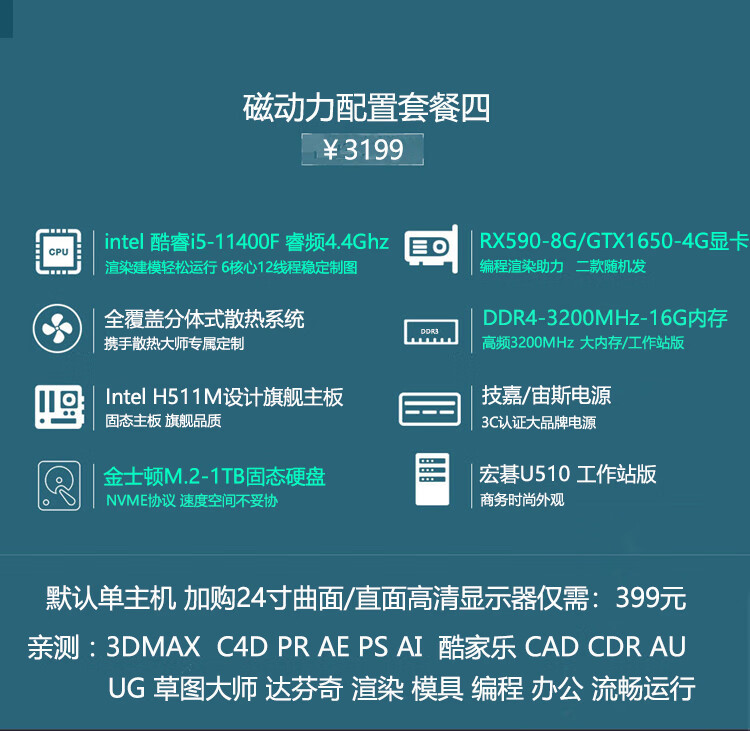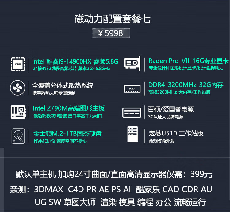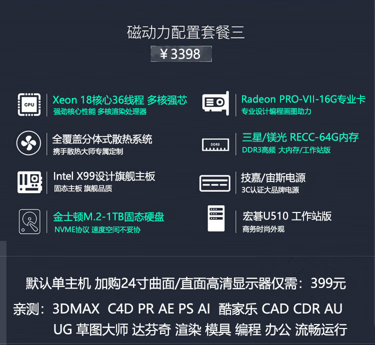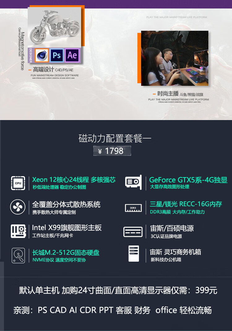 Designer's special CAD drawing UG programming 3D rendering SU modeling PS art CDR desktop assembly computer host host + 24-inch monitor 2 Xeon 12 core + 32G + 1T + 8G independent display