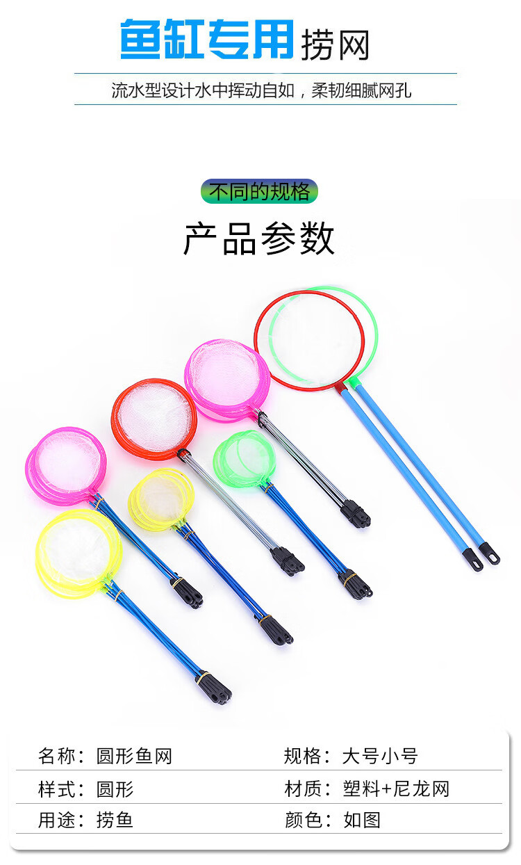 Fish tank fishing nets, aquarium supplies collection, small fishing fishing nets, ornamental fish harvesting shrimp nets, coarse nets, fishing nets, large, medium and small, 2 each