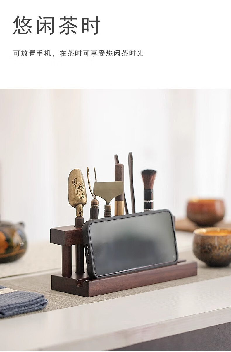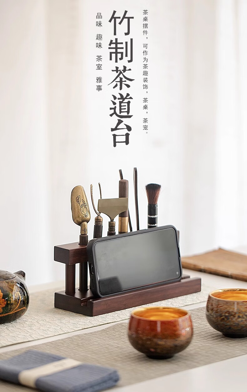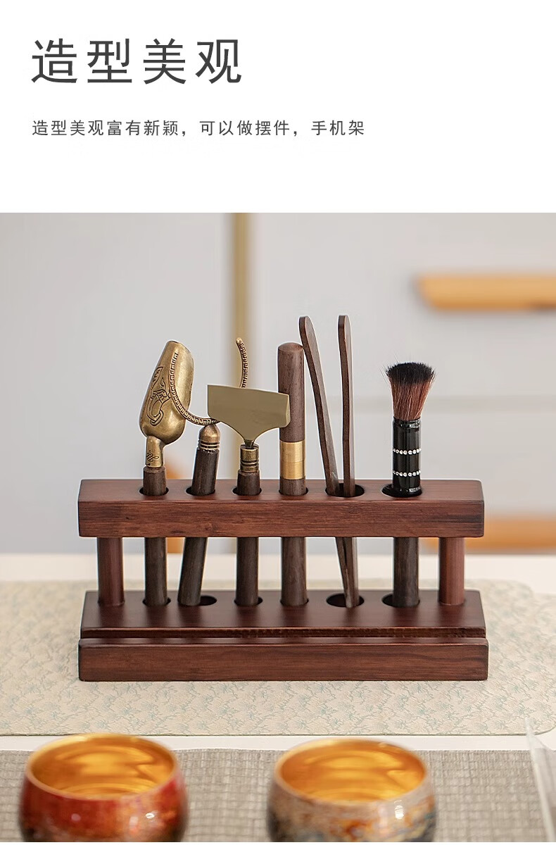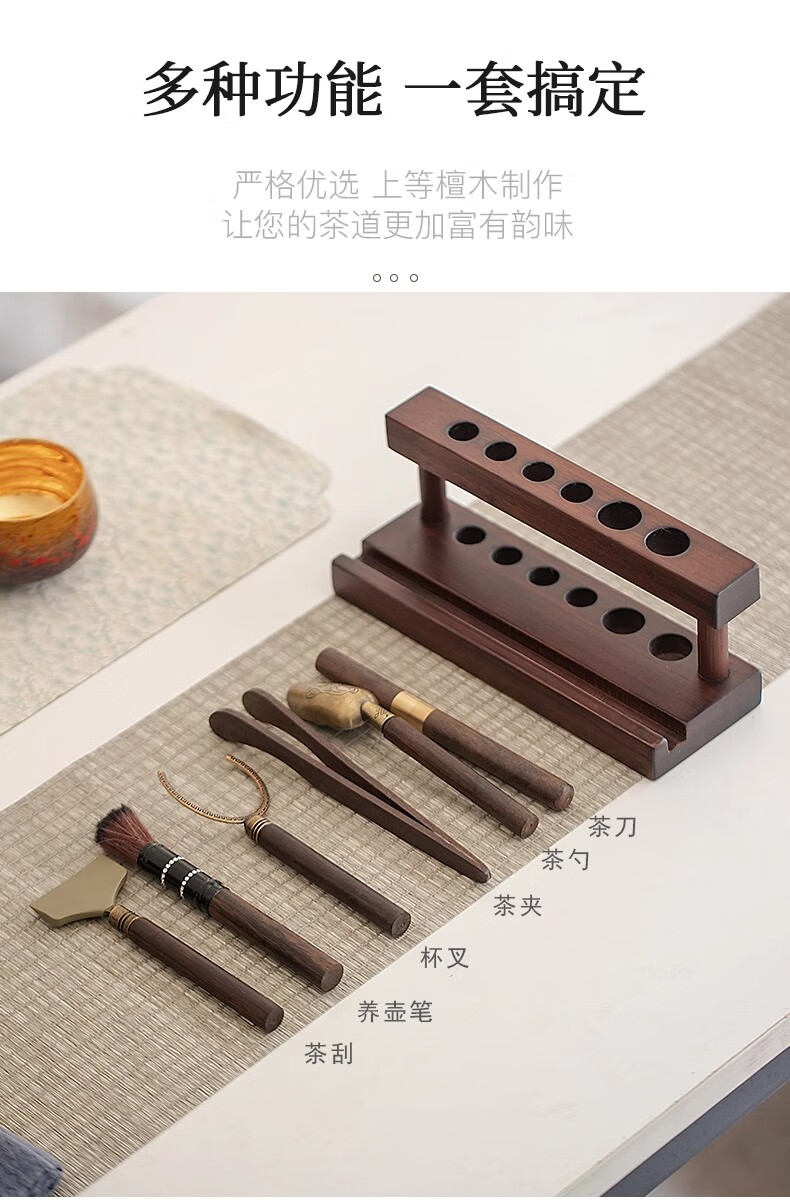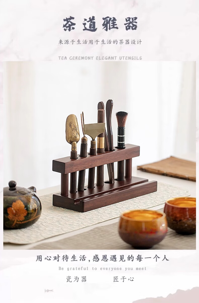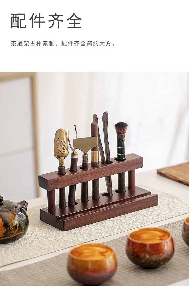 Tea Ceremony Six Gentlemen Set Tea Set Accessories High-end Tea Table Kung Fu Tea Brewing Tools and Supplies Complete Tea Table Ornaments Wooden Tea Ceremony Stand + Six Gentlemen + Tea Towel + Scissors