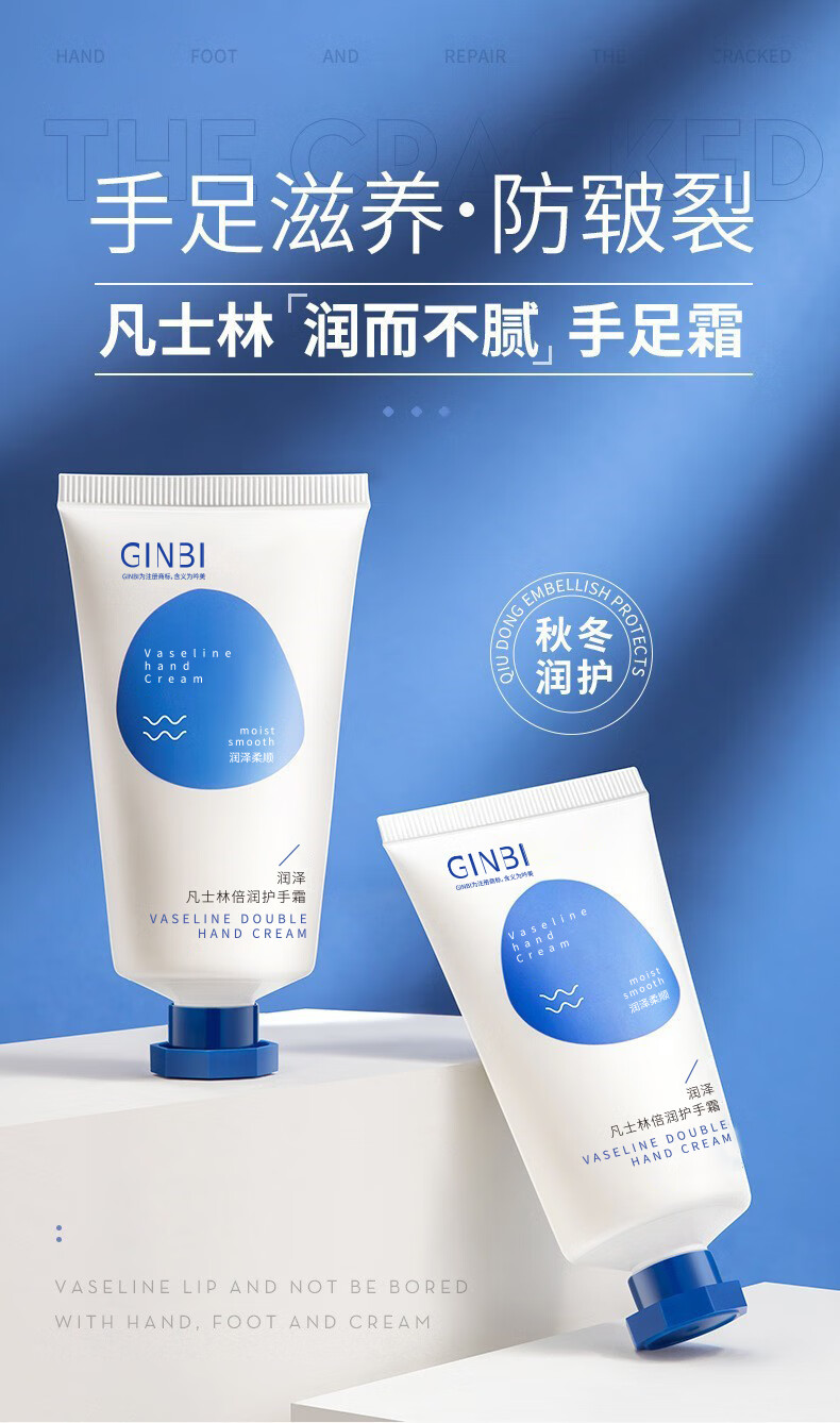 Vaseline Double Moisturizing Hand Cream, dilute hand lines, prevent dryness, remove dead skin, non-greasy, moisturizing, autumn and winter hand cream, Vaseline Hand Cream 50g, 5 pieces