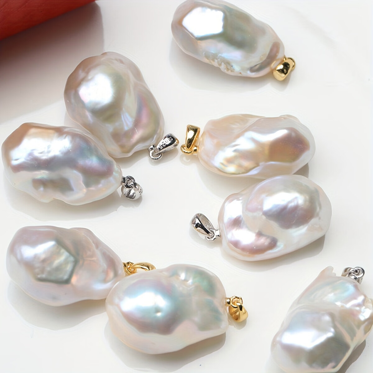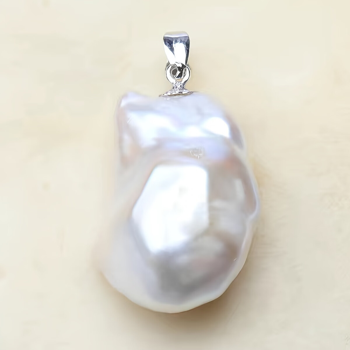 Freshwater Pearl Baroque Pearl Pendant Matches Summer Black T-Shirt Artifact Holiday Birthday Father's Day Gift White Bus Pearl Silver Pendant