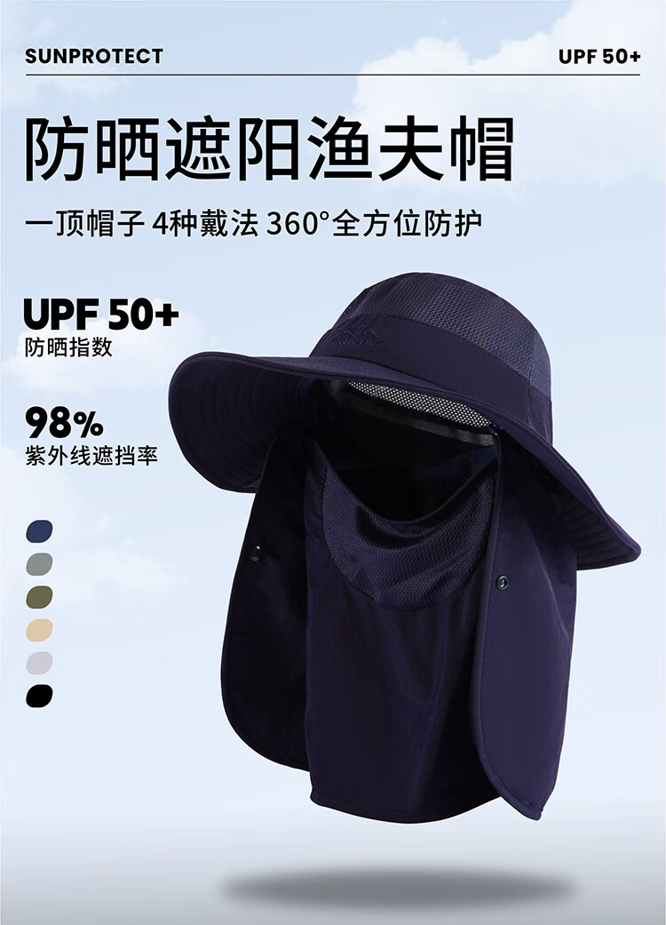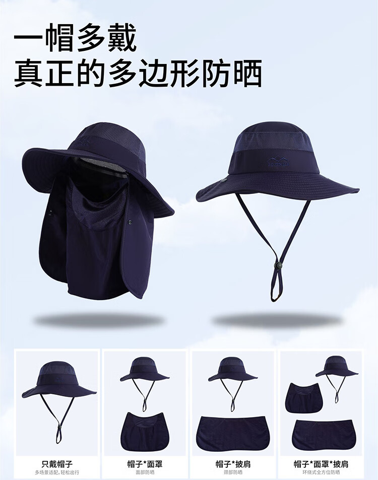 New Fisherman Hat Men's Sun Hat Summer Outdoor Quick-Drying Sun Hat Fishing Breathable Sun Hat Women's Face Covering Hat Dark Gray One Size