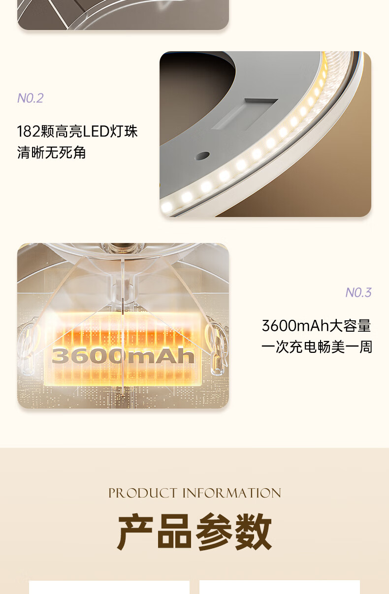 Gevilan 3D linkage makeup mirror with light LED fill light beauty mirror desktop dressing table high-definition makeup mirror Chinese Valentine's Day gift for wife and girlfriend M2 Milkshake White-Muxia Iris Gift Box
