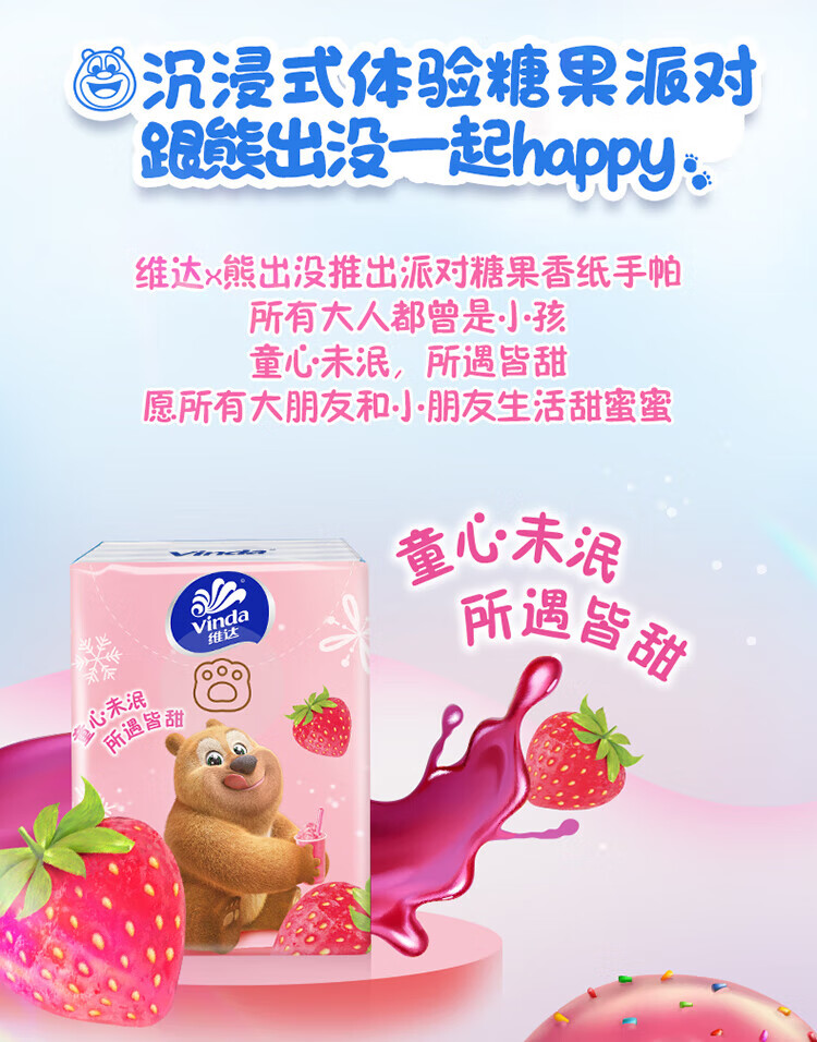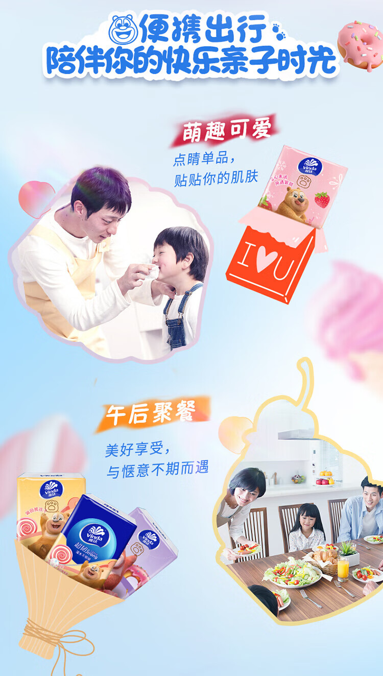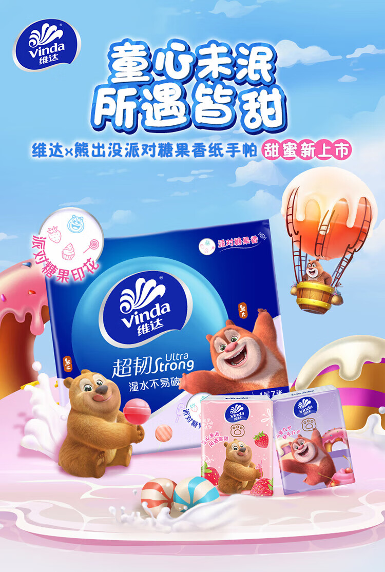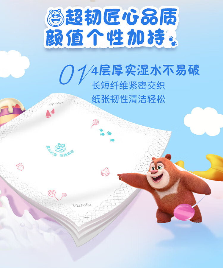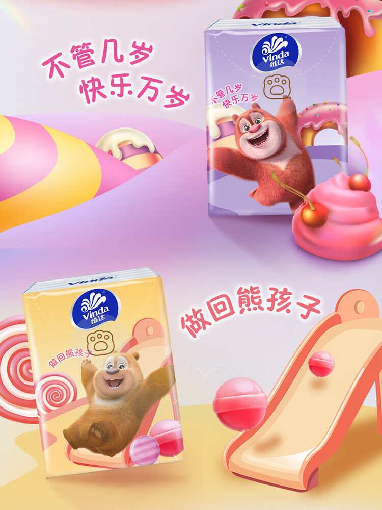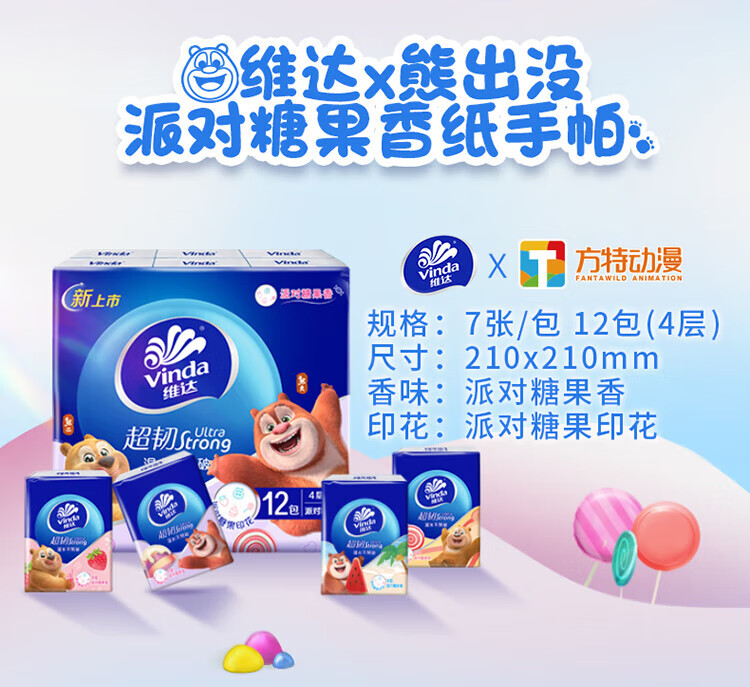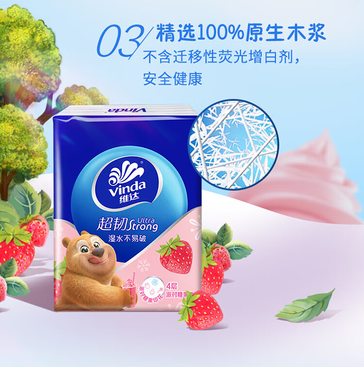 Vinda super tough handkerchief recommended by Zhao Liying Bear infested handkerchief 4 layers 7 sheets portable napkin small bag Vinda super tough handkerchief 4 layers 7 sheets*36 pack