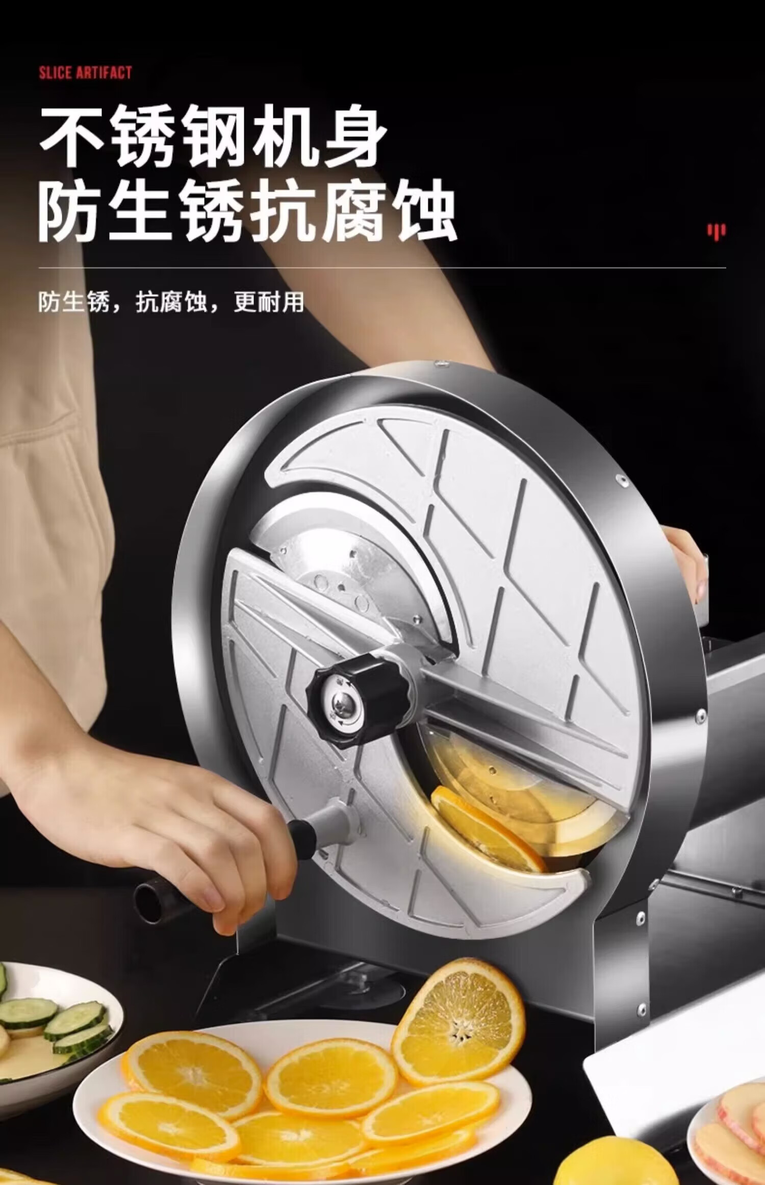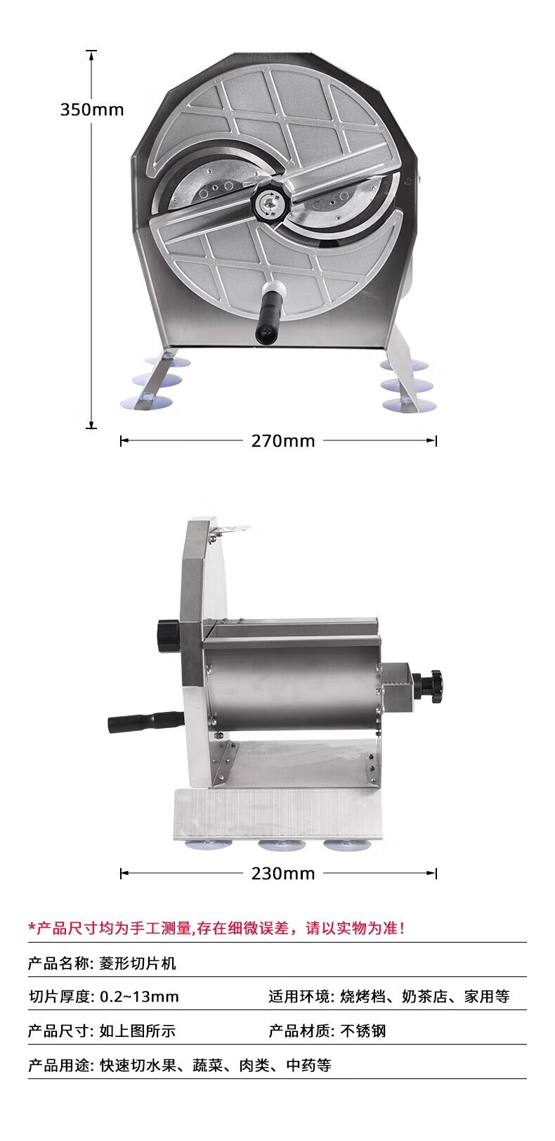 Baijie Fruit Slicer Fully Automatic Fruit Slicing Artifact Commercial Manual Stainless Steel Potato Chip Machine Lemon Slicer Upgraded丨Circular Slicer-Stable 6-foot Pad