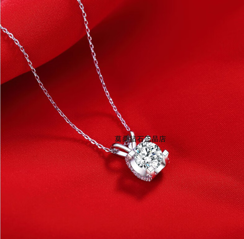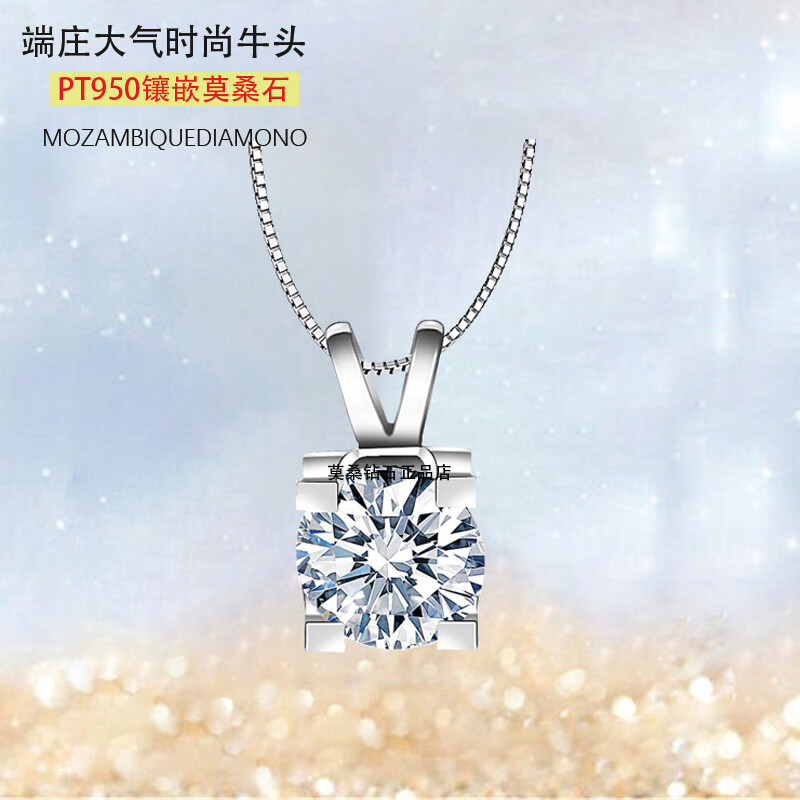Chi Ling's new PT950 platinum moissanite necklace classic shining rabbit tail cow head 1 carat pendant light luxury clavicle chain for women rabbit tail cow head single pendant