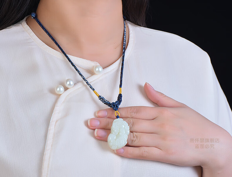 Chili high-end hand-woven necklace rope gold pendant lanyard jade pendant jade beeswax Wushi brand men and women with rope hand-woven pendant rope