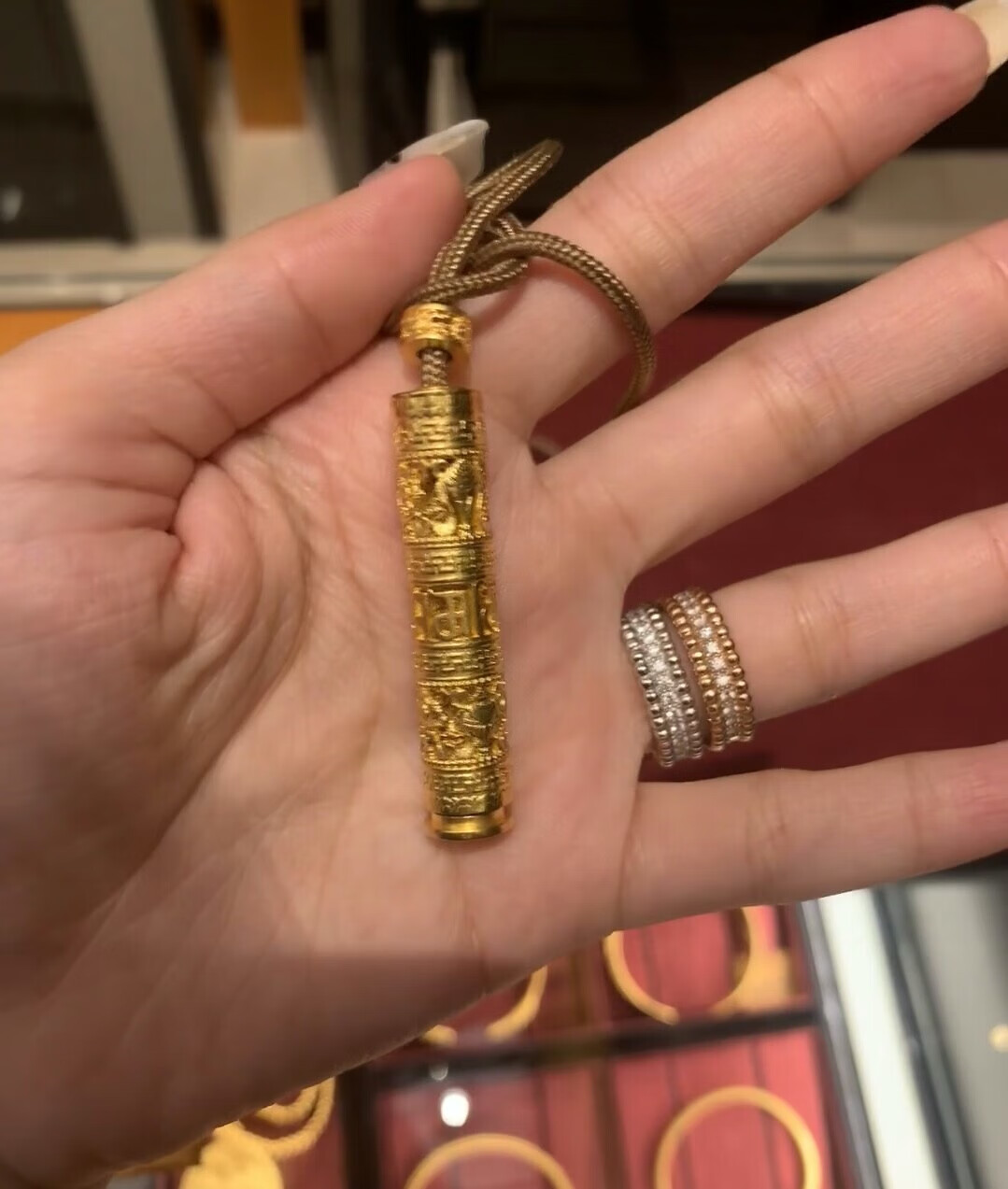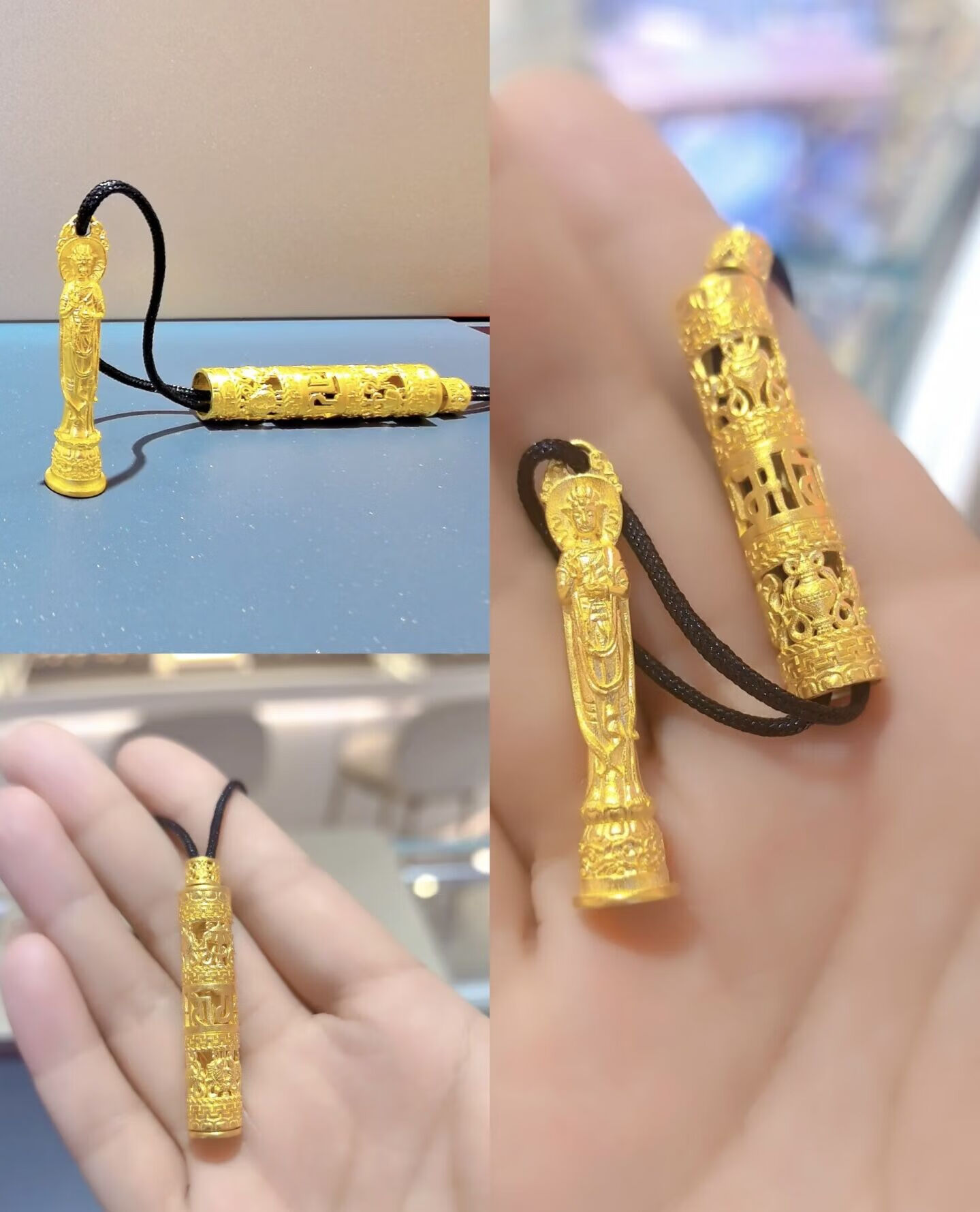 Chili inherited gold-coated silver ancient Buddhist Buddha pendant eight treasures portable Buddha pendant hollow can be opened for men and women sweater chain eight treasures portable Buddha pendant Buddha pendant gold about 0.4