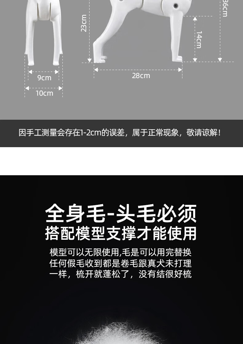 Rui Chong Poodle fake hair, simulated hair, pet grooming practice model dog skeleton, model dog full body fake hair, VIP package, brown hair + VIP skeleton