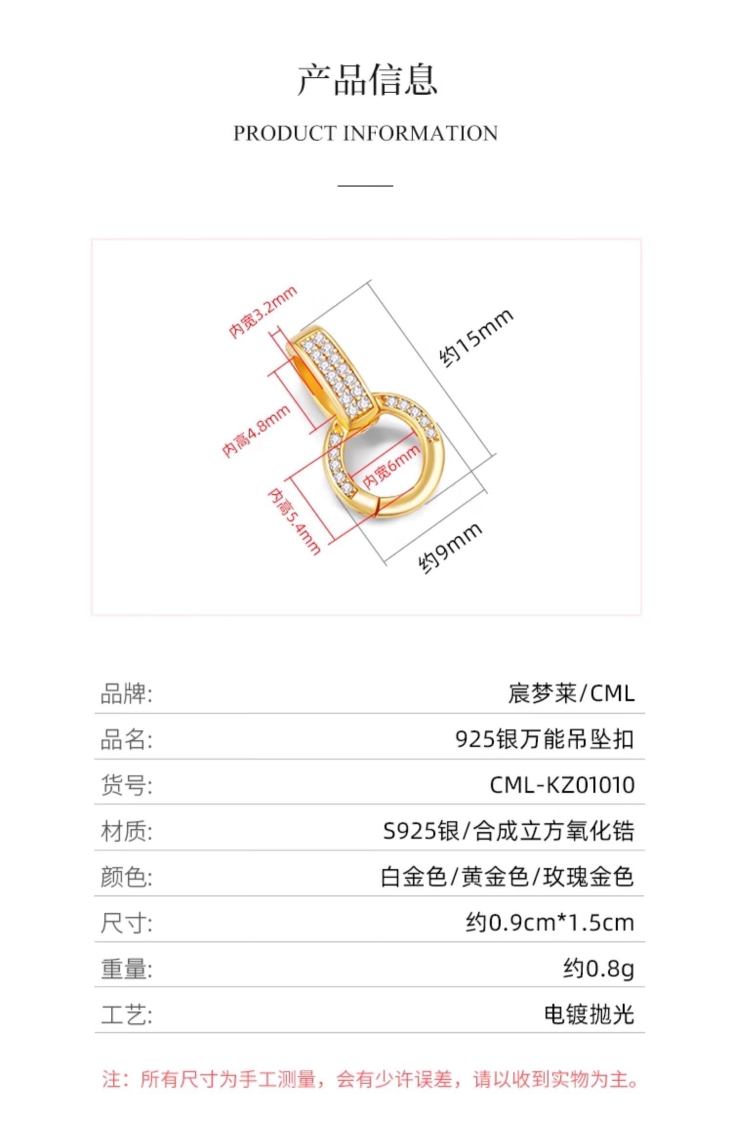 Pool case 925 sterling silver buckle pearl necklace buckle head diy accessories 18k gold universal buckle connecting buckle buckle pendant buckle sterling silver connecting buckle (gold color)