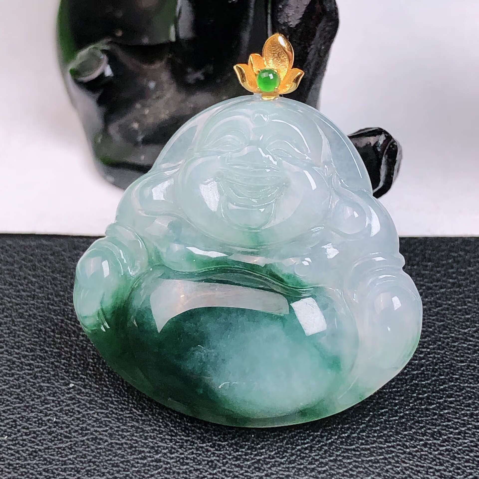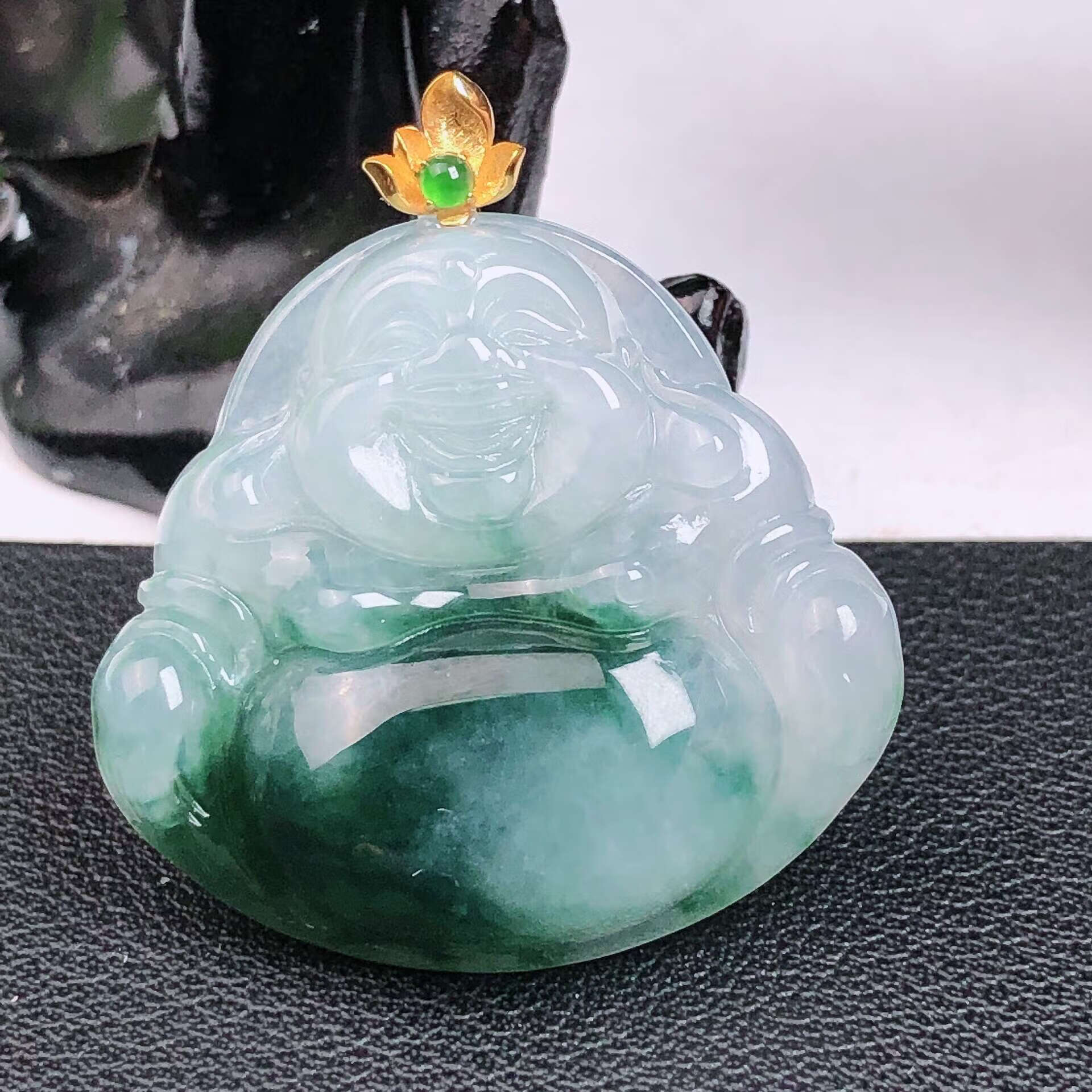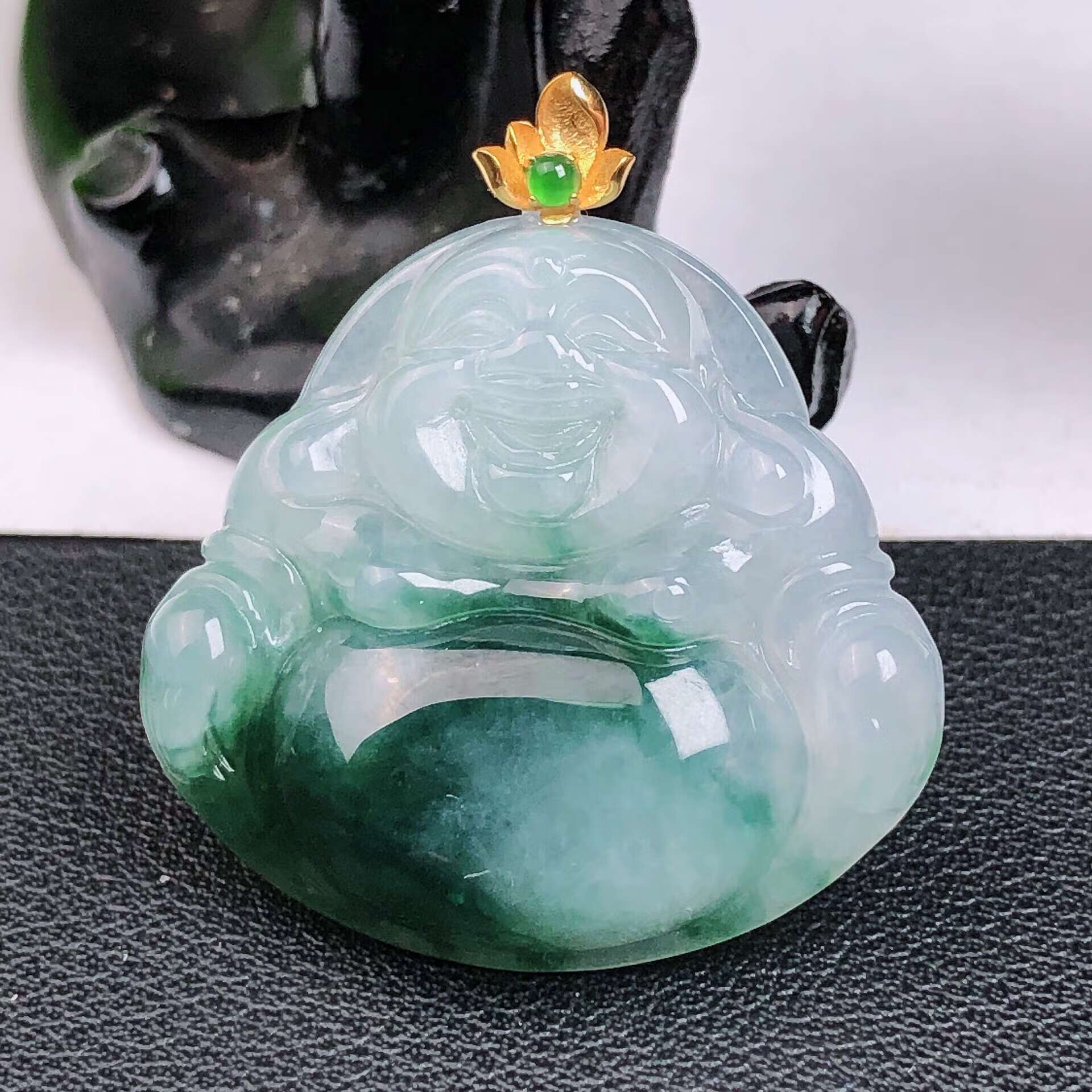 Chili Myanmar A-grade jade 18k gold inlaid with icy green Buddha pendant fashionable design