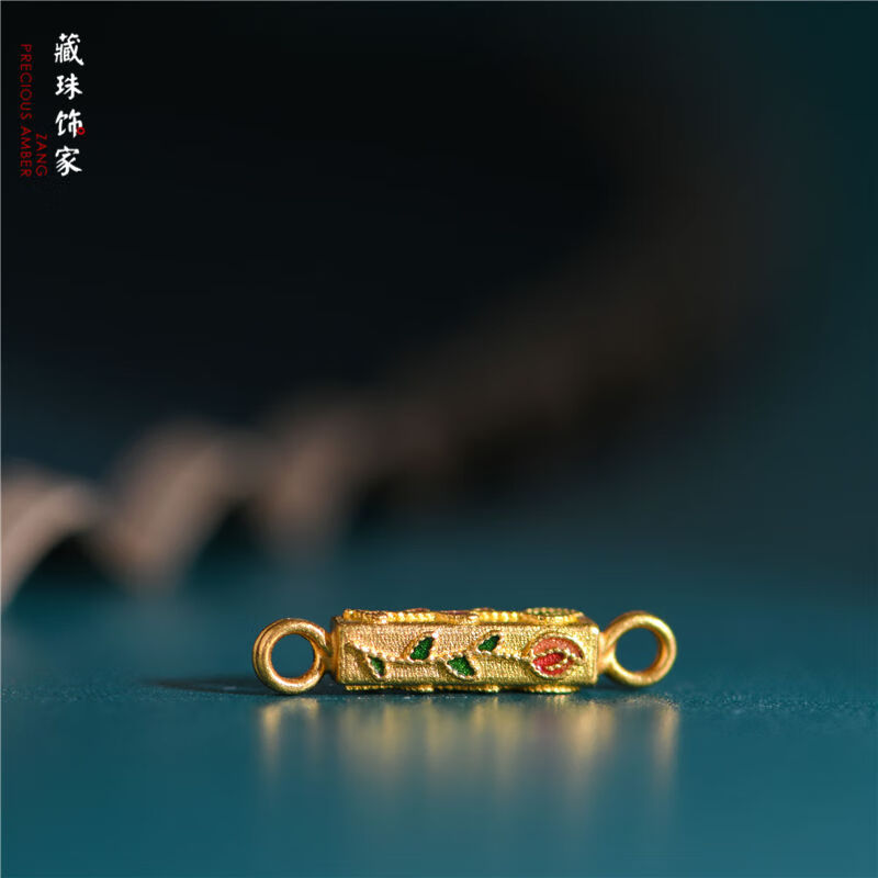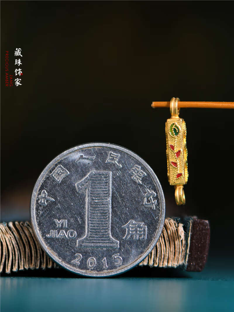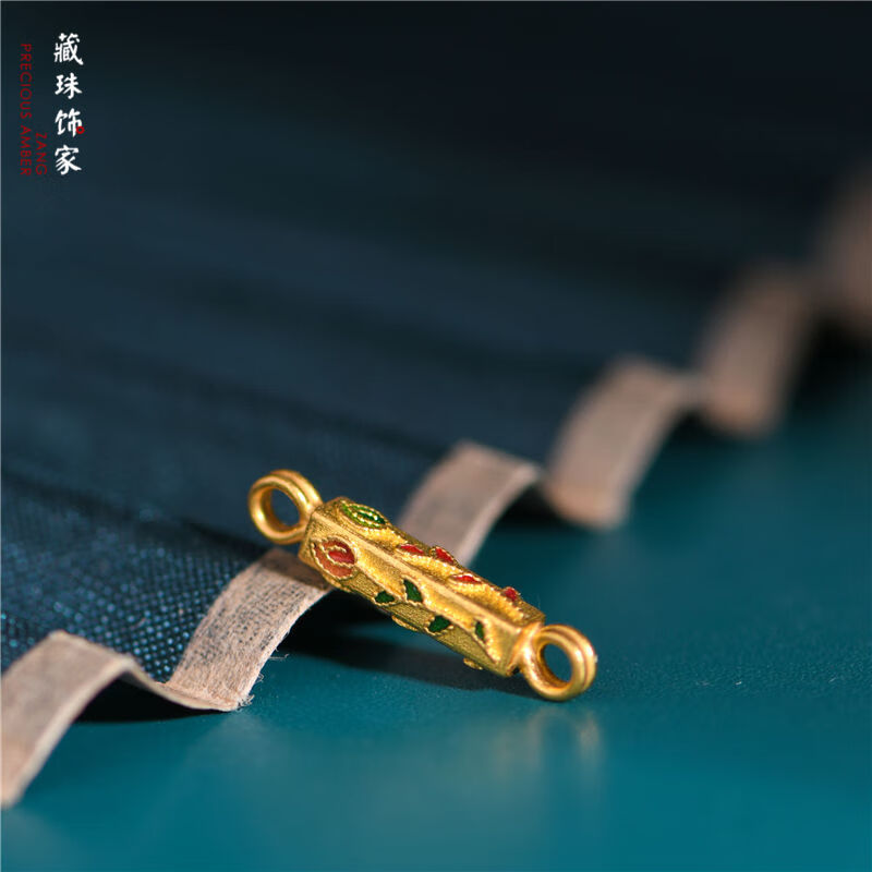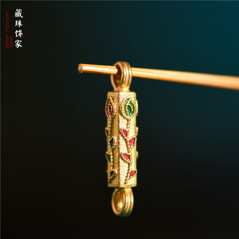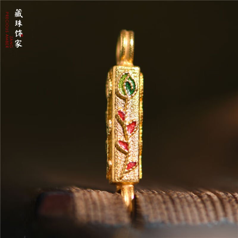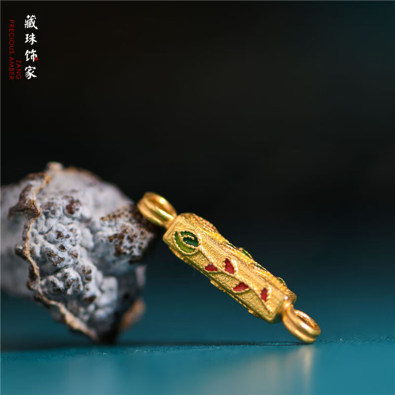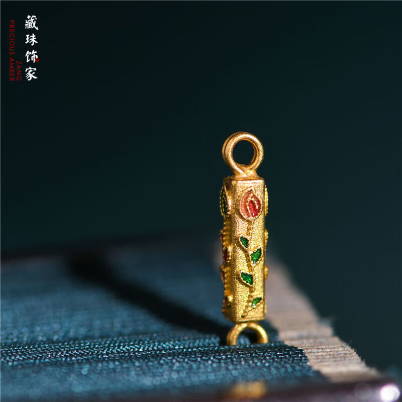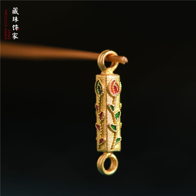 Chili Tibetan bead jewelry pure gold enamel burnt blue rose square column palace ancient gold bracelet pendant accessories fashion