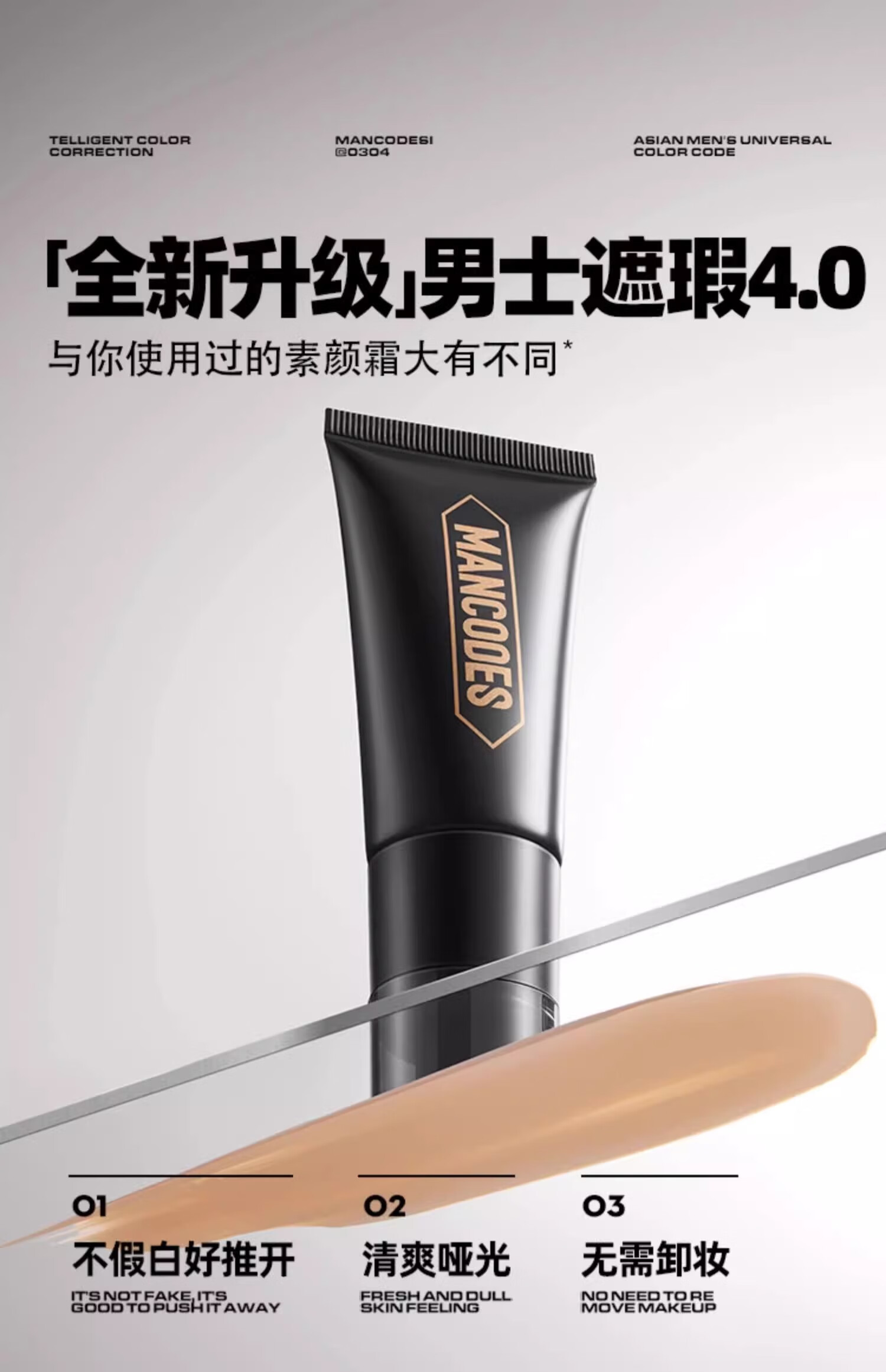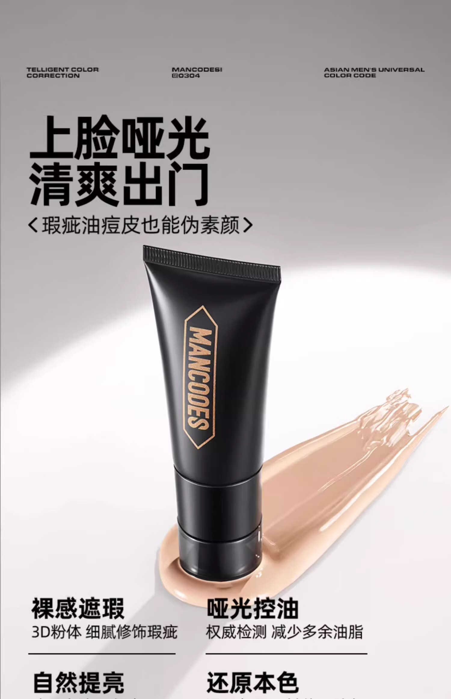 Left color, right color, men's plain makeup cream, repairing BB cream, natural concealer, acne marks, dark circles, oil control, nude makeup, BB cream, liquid foundation cosmetics, 35g repair cream, 1 stick, free 2 packs of samples