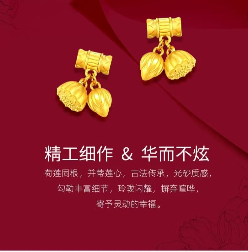 Chilu Pure Gold 999 Two Worlds Huan Bracelet DIY Lotus Persimmon Ruyi 3D Hard Gold Pure Gold Bracelet Pendant Gold Transfer Beads About 0.46g Free Exquisite Gift Box