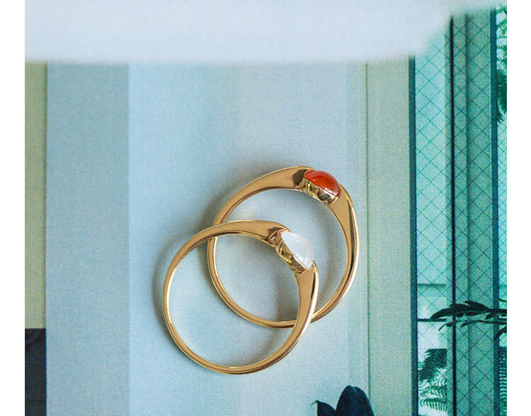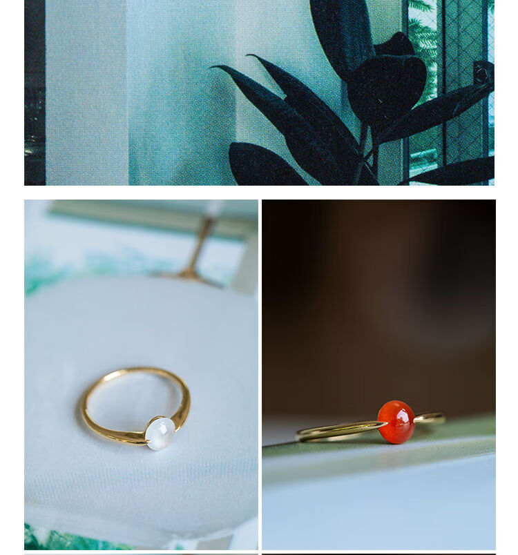 YIBIY Manxu Jewelry 18k gold ring niche simple light luxury versatile temperament girl high-end ring red jade