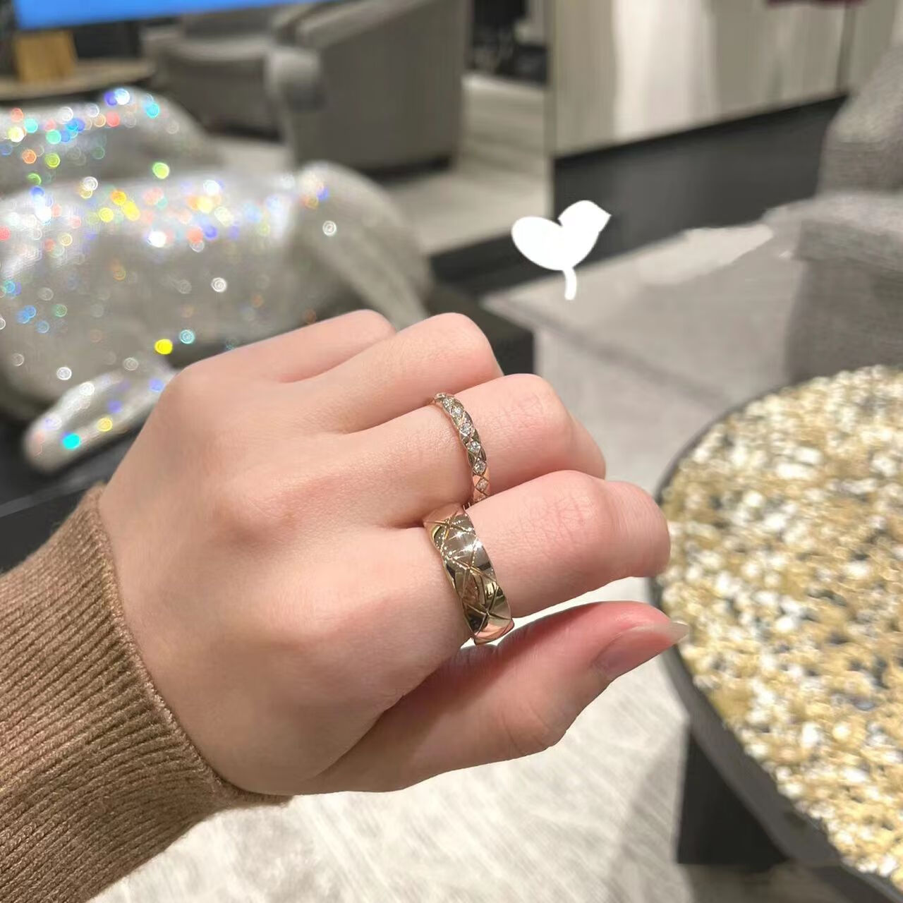 YIBIY small fragrant style coco diamond plaid ring for women 18K rose gold cross