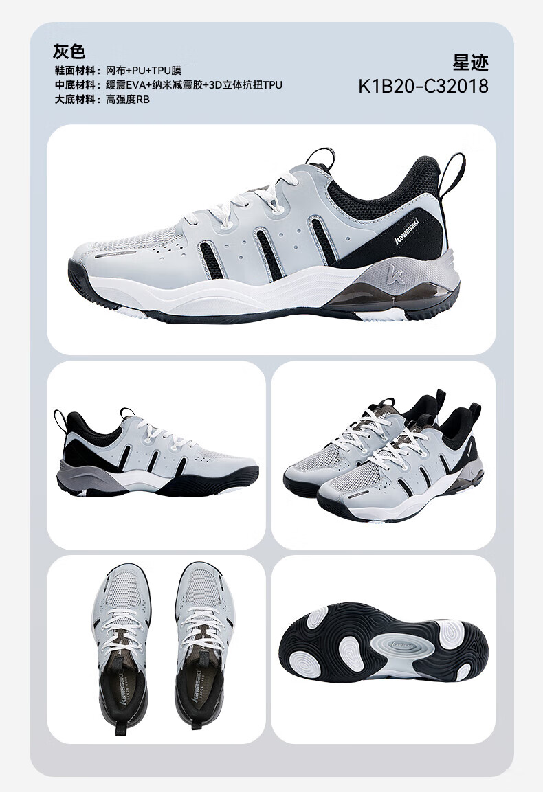Kawasaki (KAWASAKI) new badminton shoes Xingji men and women professional sports anti-shock and anti-twist carbon plate sports shoes Xingji K1B20-C32018 Gray 41