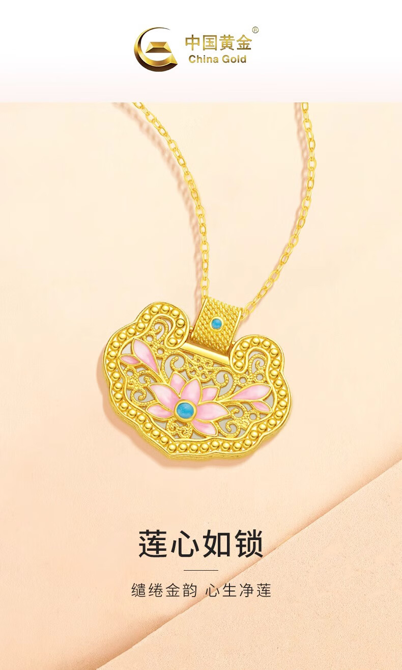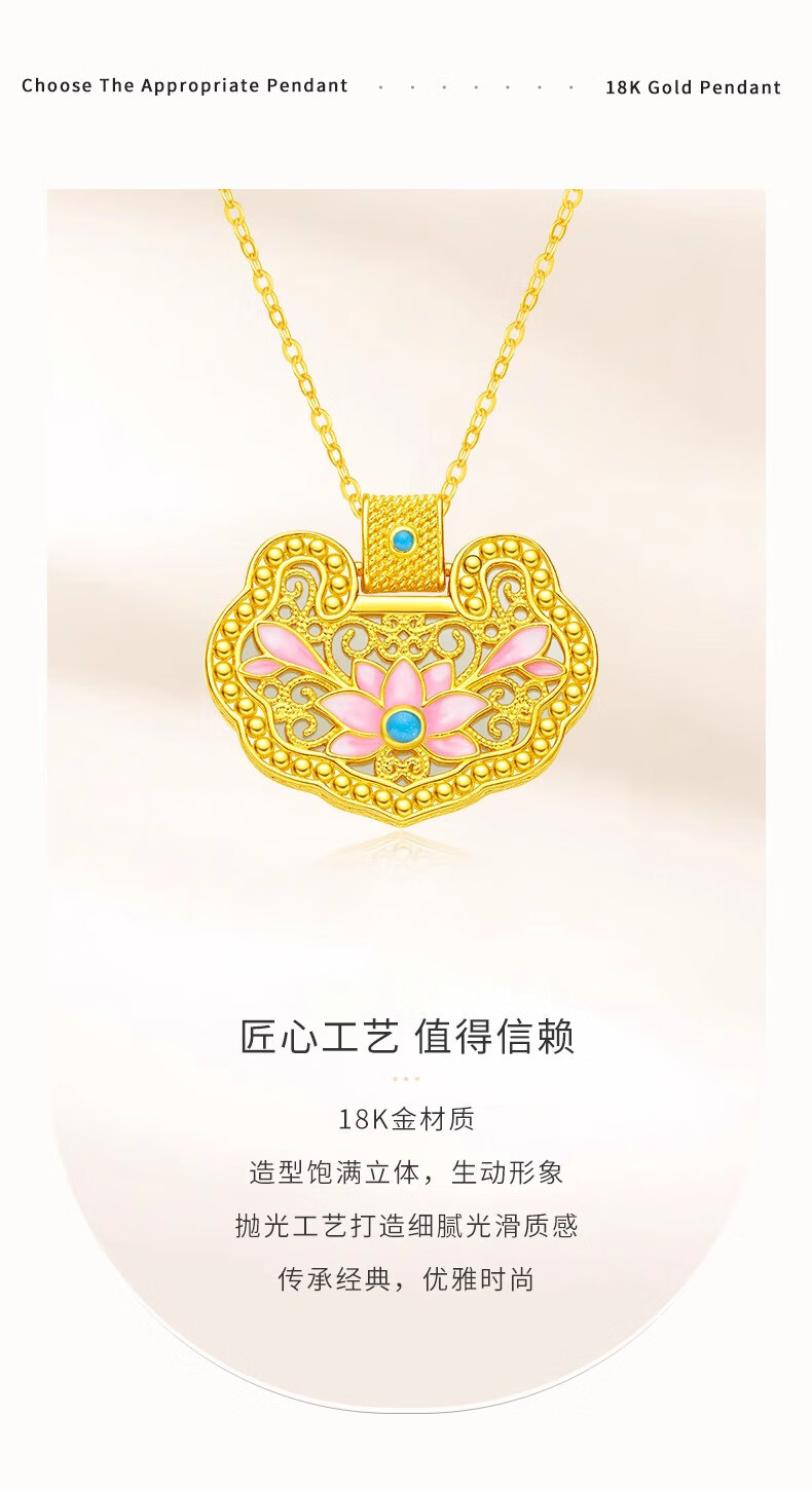 CHINA GOLD 18K gold lotus longevity lock pendant for women new style exquisite K Valentine's Day birthday gift for girlfriend and wife 18K gold longevity lock pendant with a total weight of about 1.7g and a free silver chain
