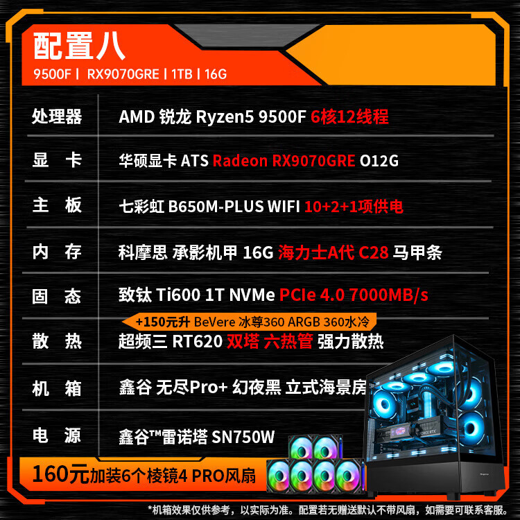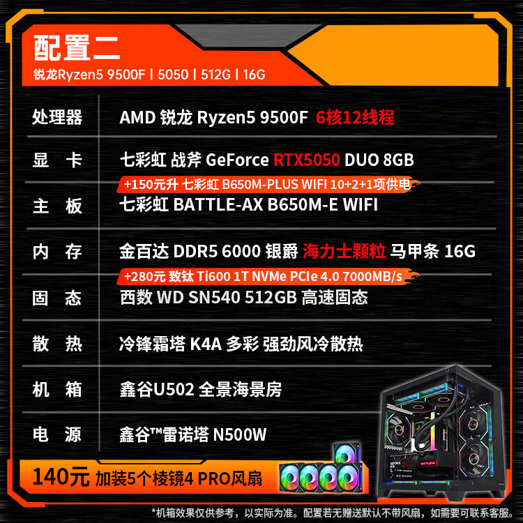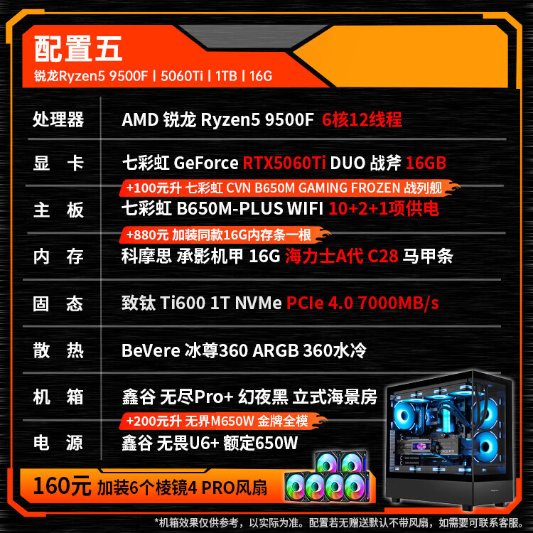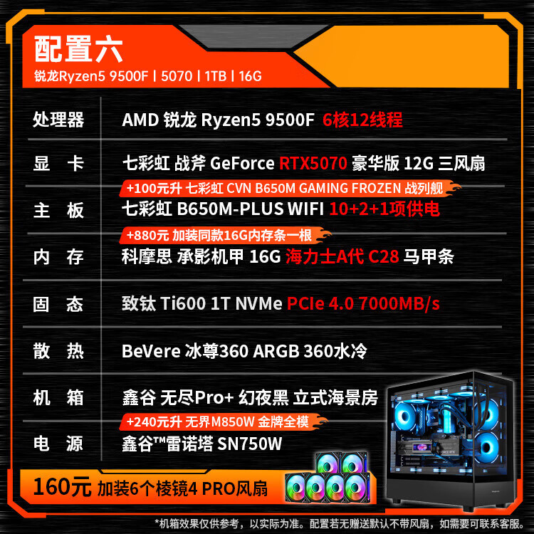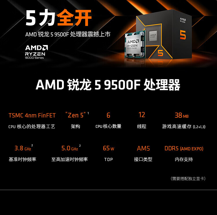 AMD 24-issue interest-free Ryzen R5 9500F RTX5060Ti 5070 graphics card desktop assembly computer e-sports console game AI rendering computer DIY assembly machine configuration one R5 9500F no graphics card sea view room host