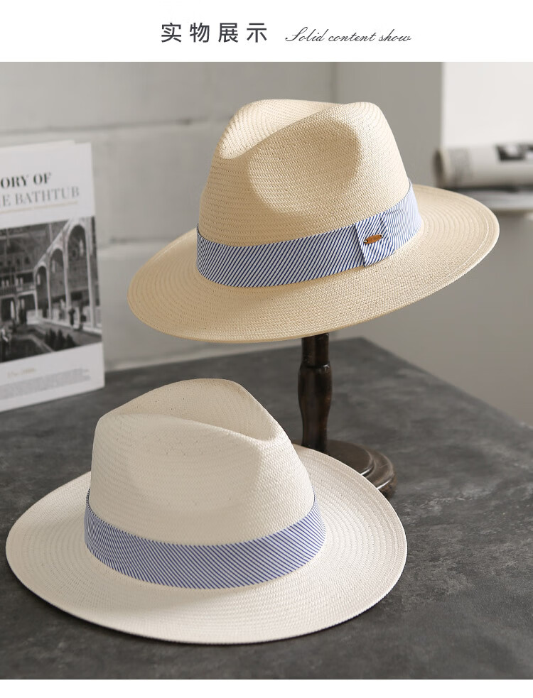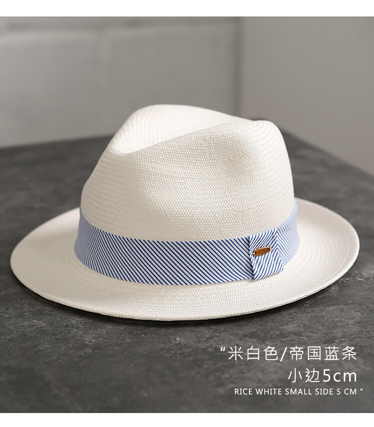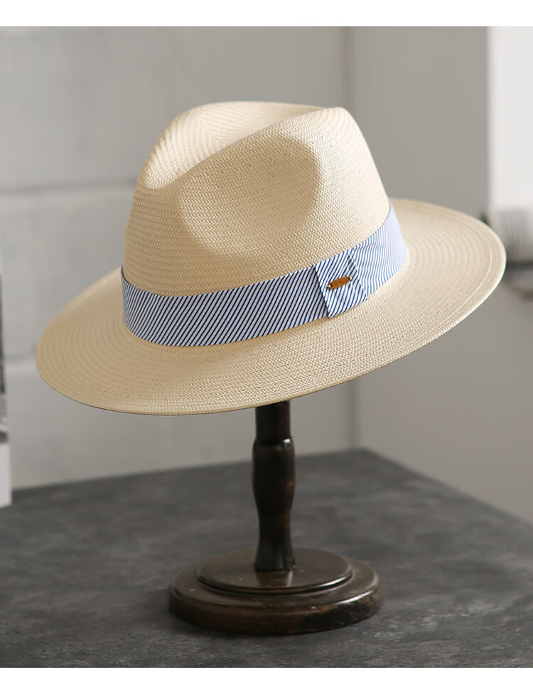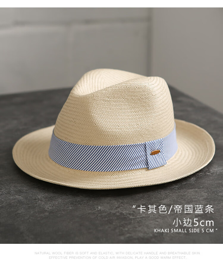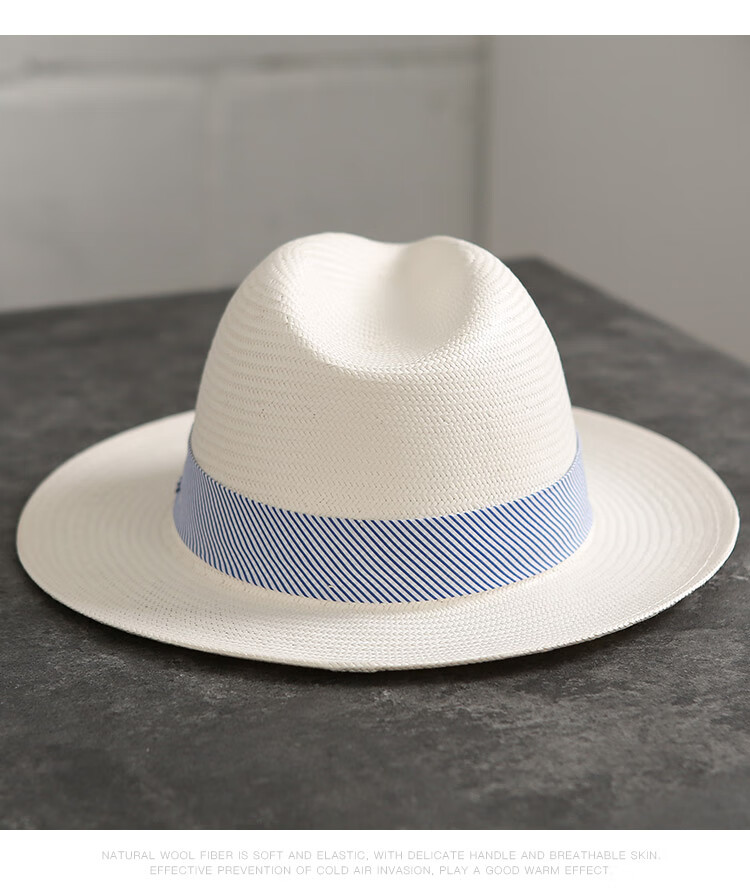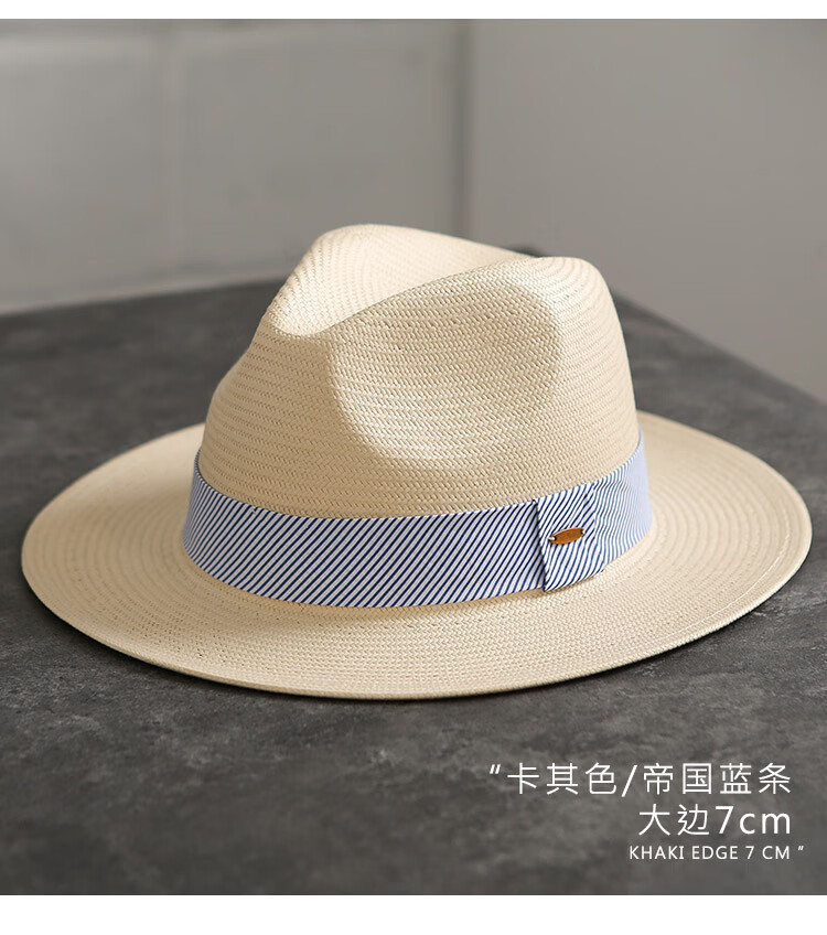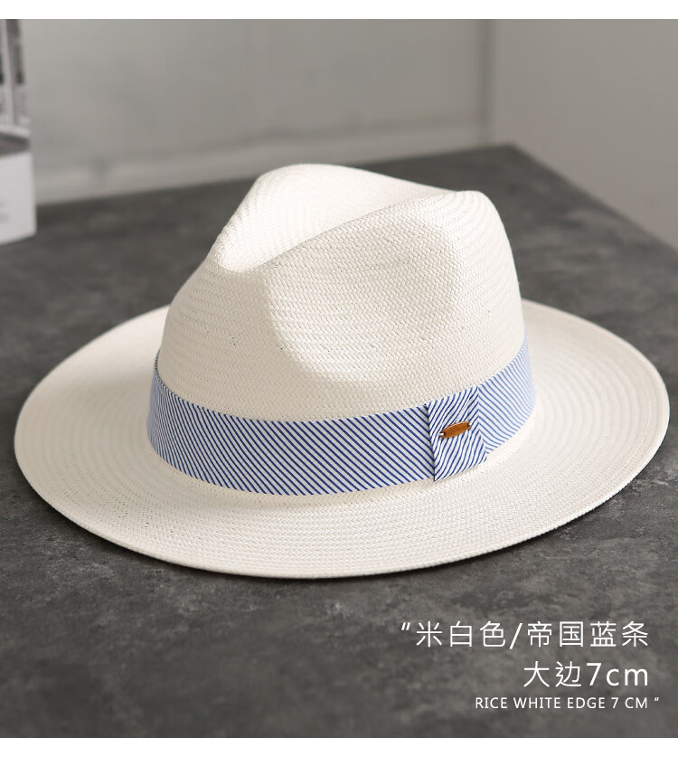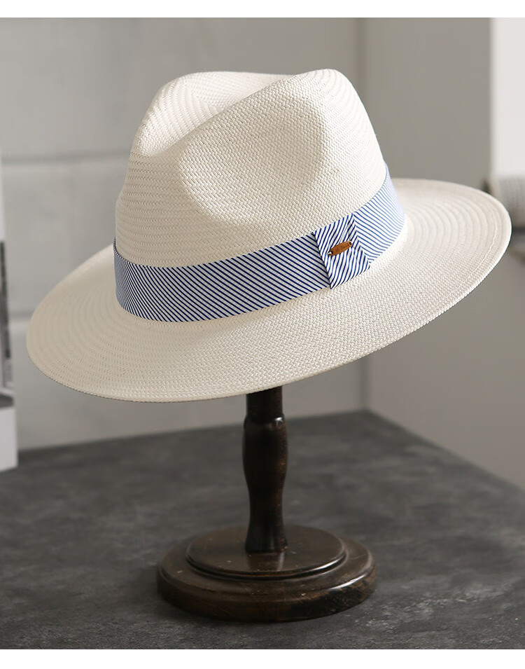 Mr DUCK's new product, handmade fine three-quarter grass white Panama straw hat for men and women, summer large-brimmed jazz beach hat with big head MS226236-khaki_empire blue ribbon (extra size (over 61cm, only for extra large head circumference)
