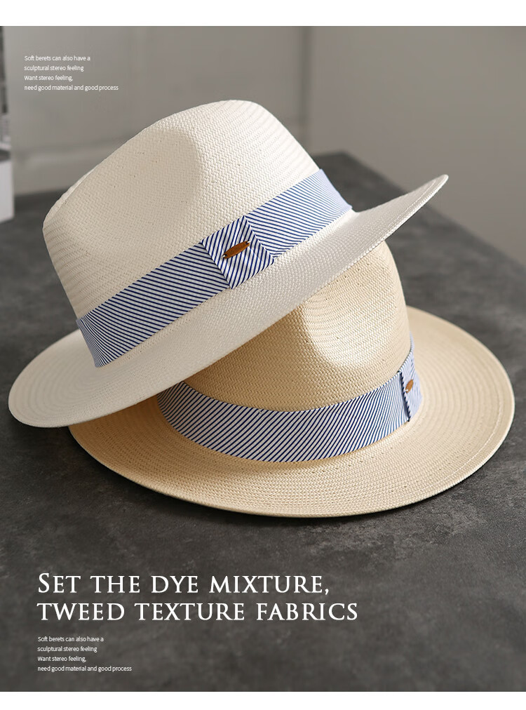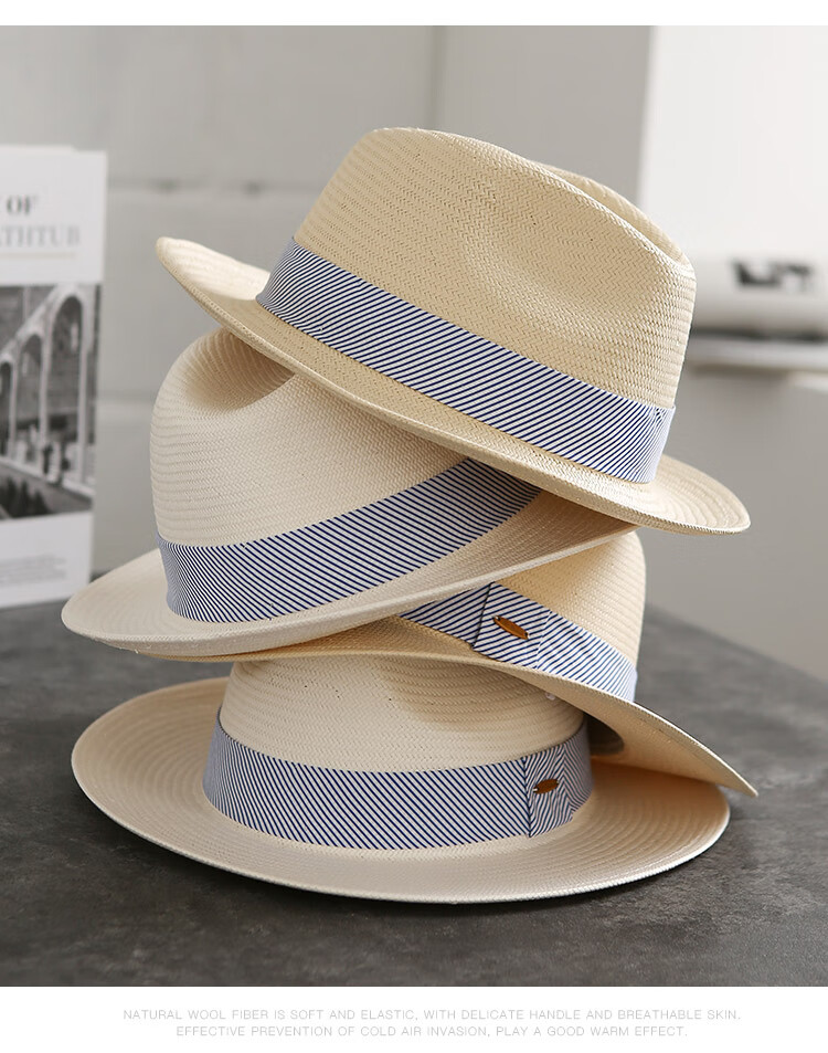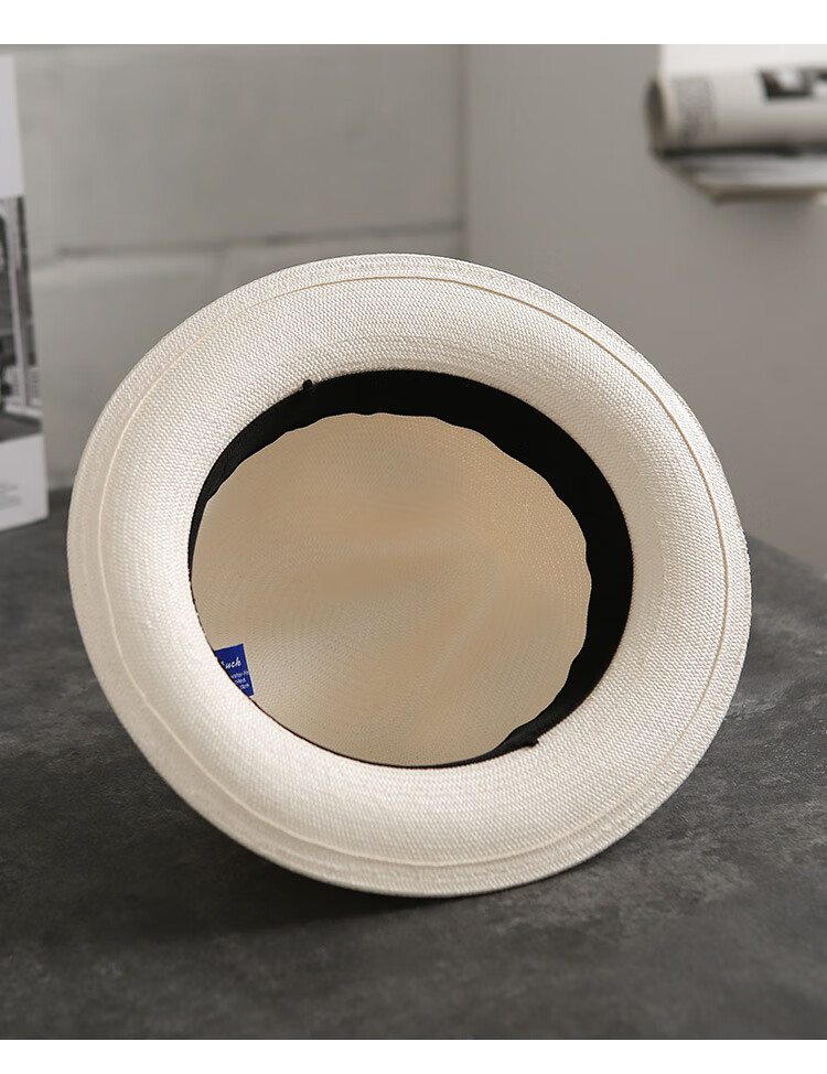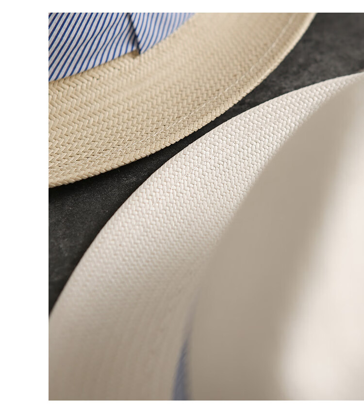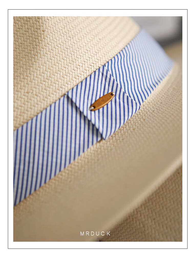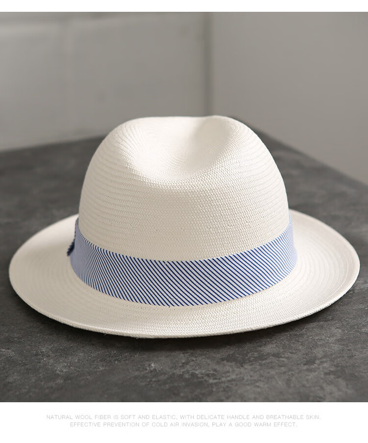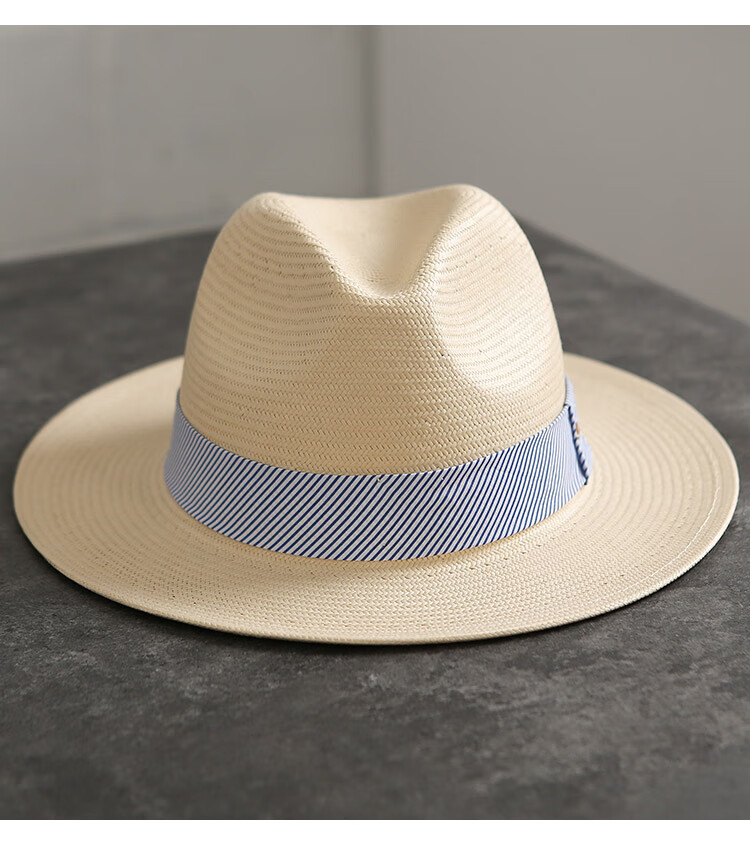 Mr DUCK's new product, handmade fine three-quarter grass white Panama straw hat for men and women, summer large-brimmed jazz beach hat with big head MS226236-khaki_empire blue ribbon (extra size (over 61cm, only for extra large head circumference)