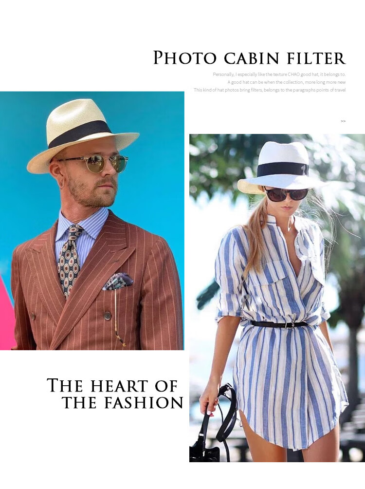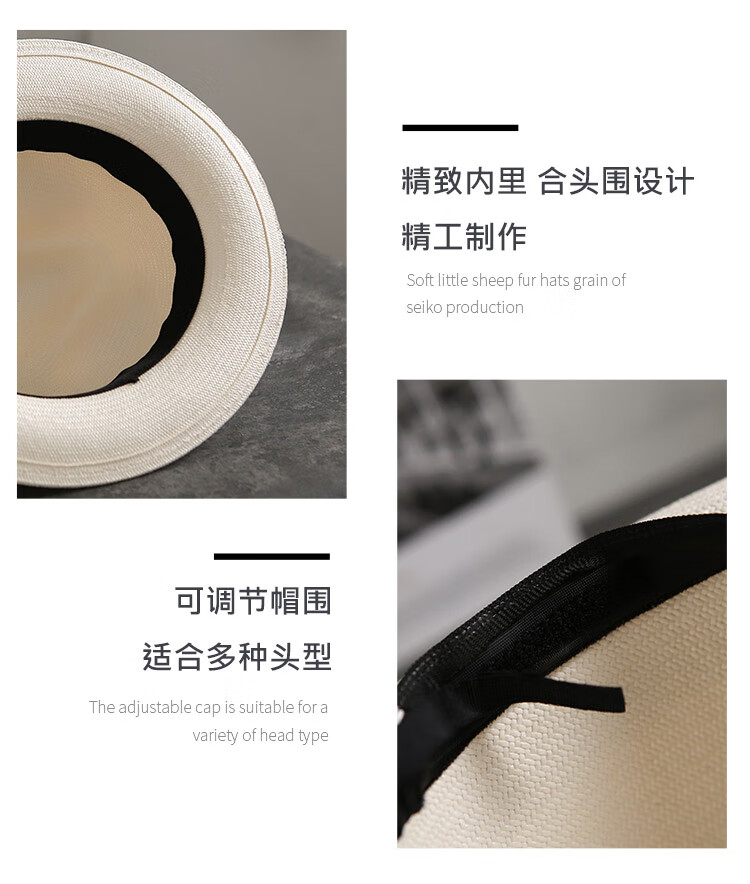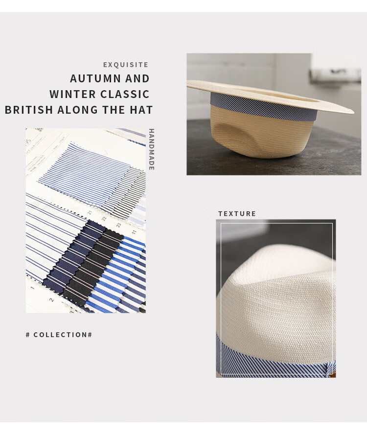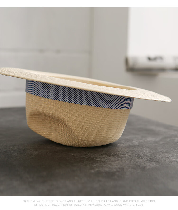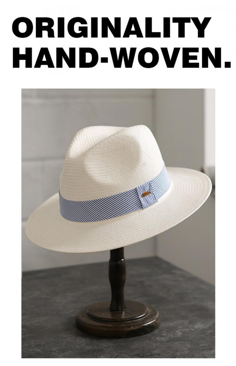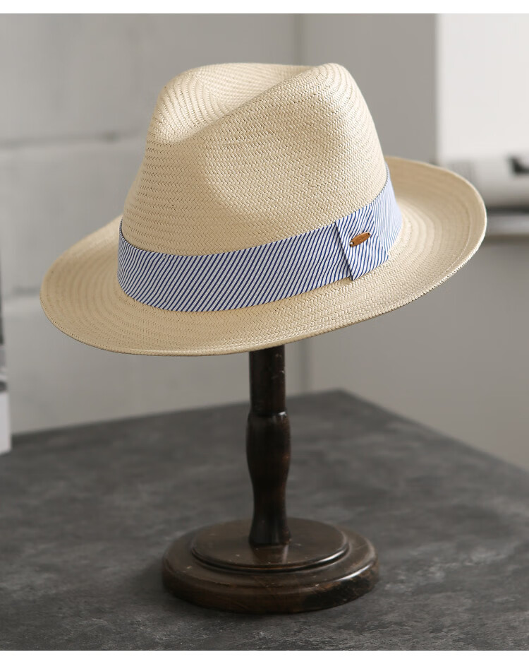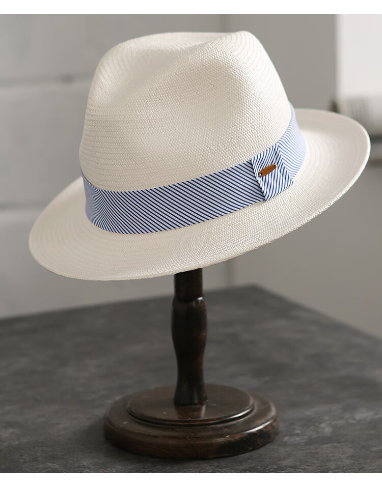 Mr DUCK's new product, handmade fine three-quarter grass white Panama straw hat for men and women, summer large-brimmed jazz beach hat with big head MS226236-khaki_empire blue ribbon (extra size (over 61cm, only for extra large head circumference)