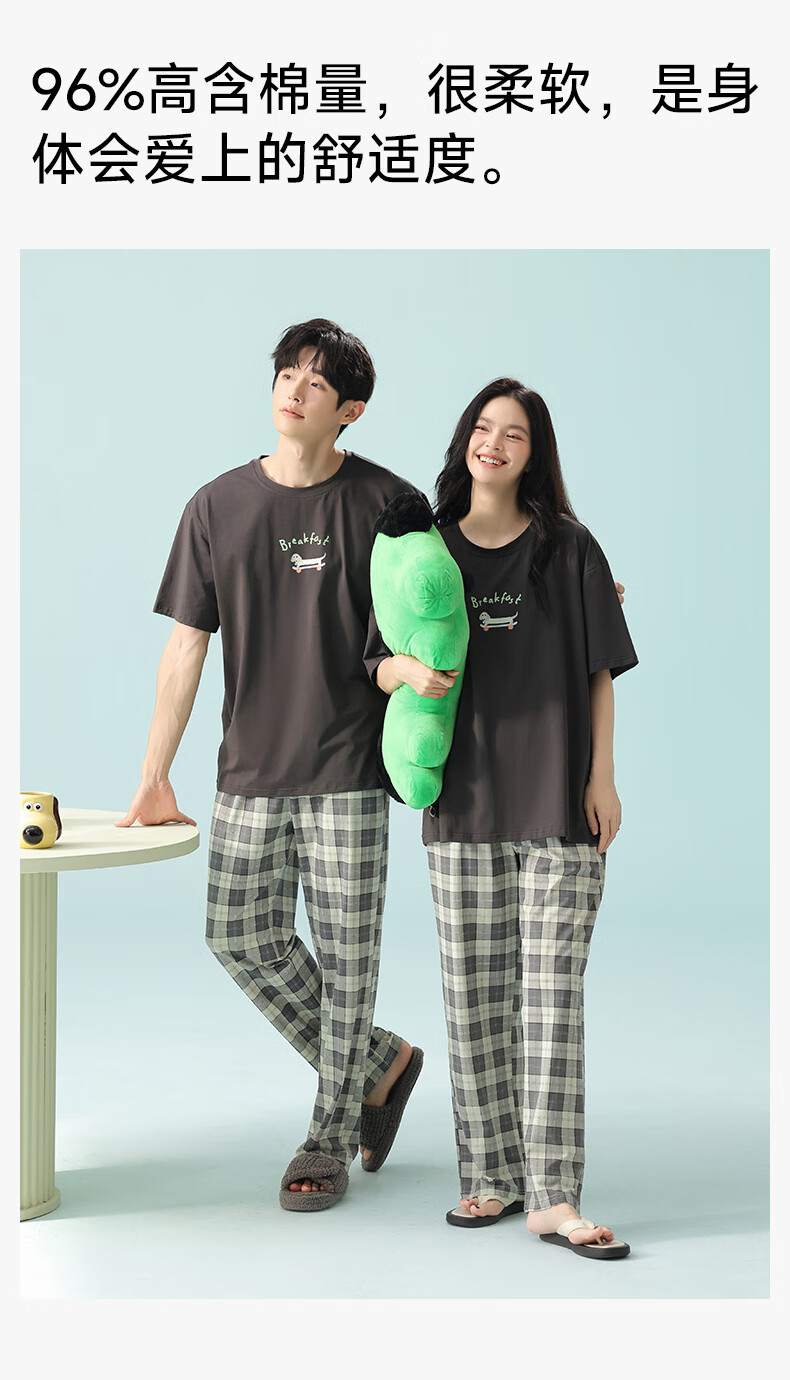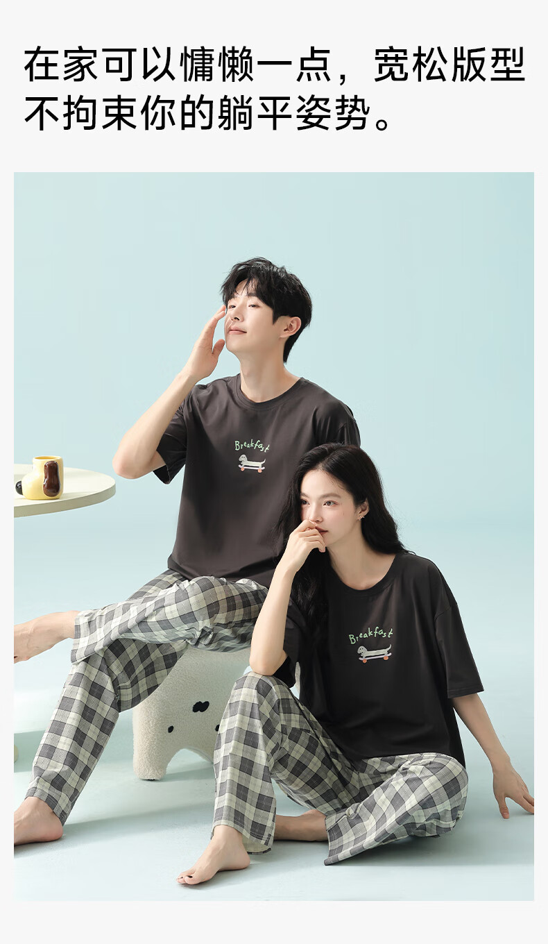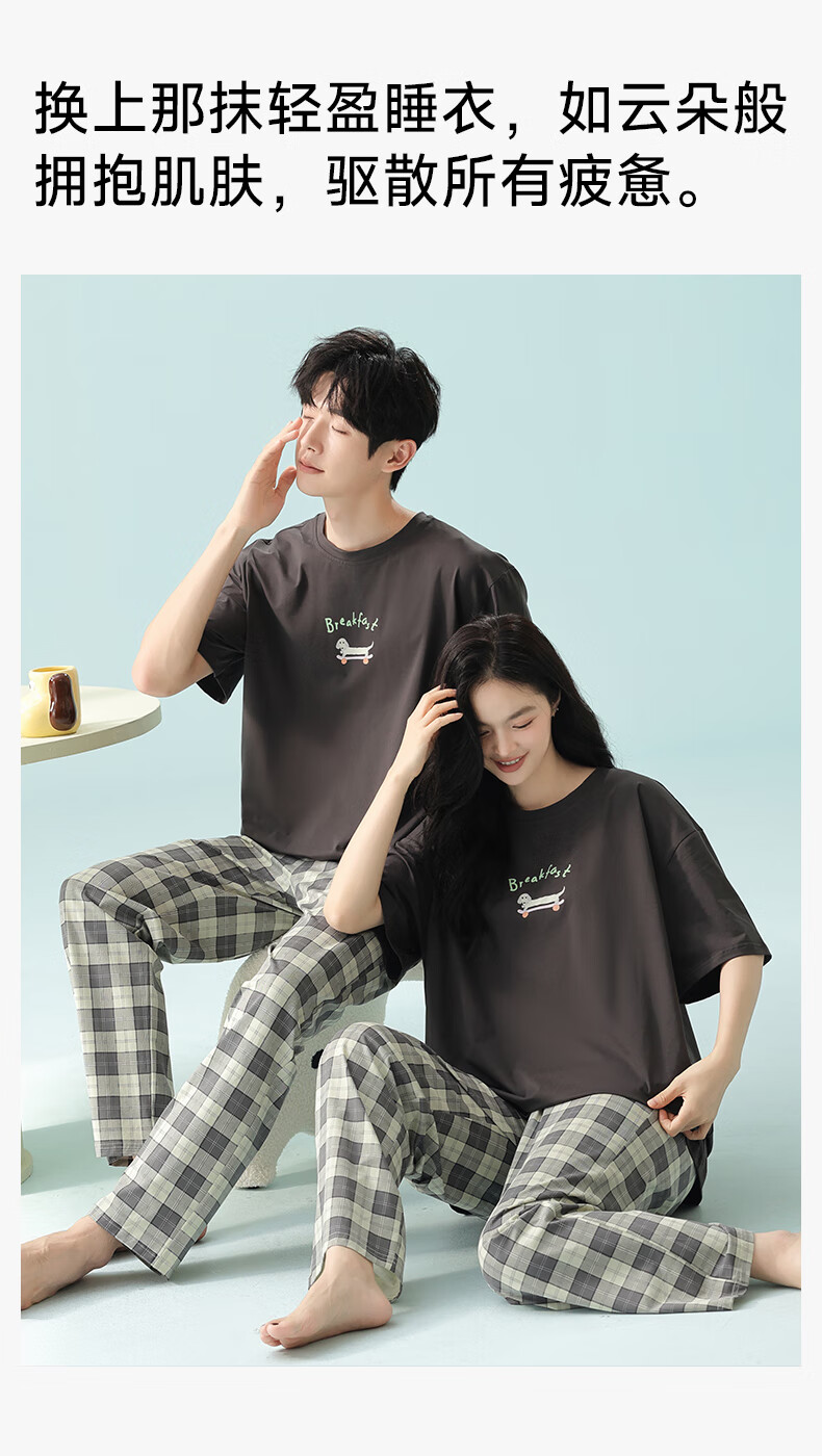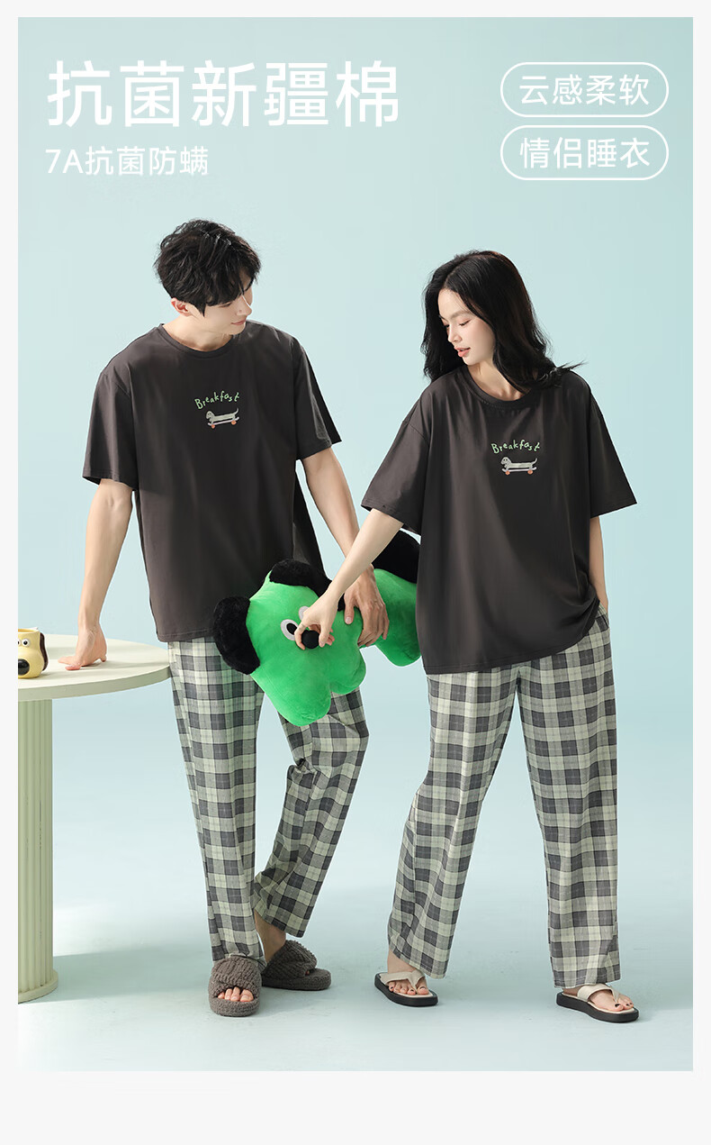 Pure cotton couple pajamas for women antibacterial Xinjiang cotton spring and summer short-sleeved trousers Korean style thin home wear set 5E5141-Men's XL