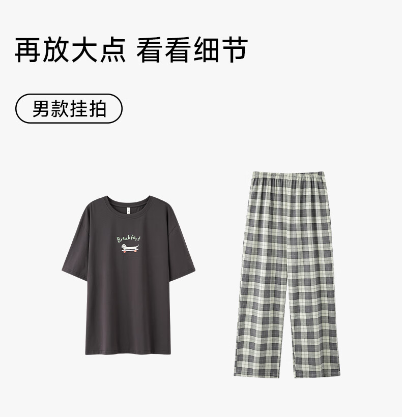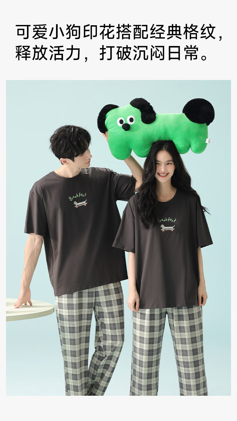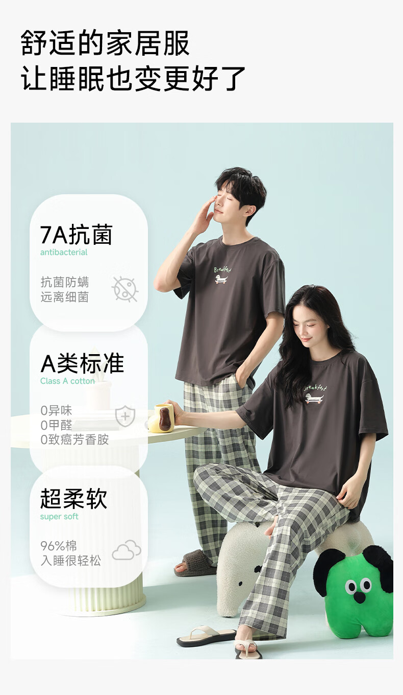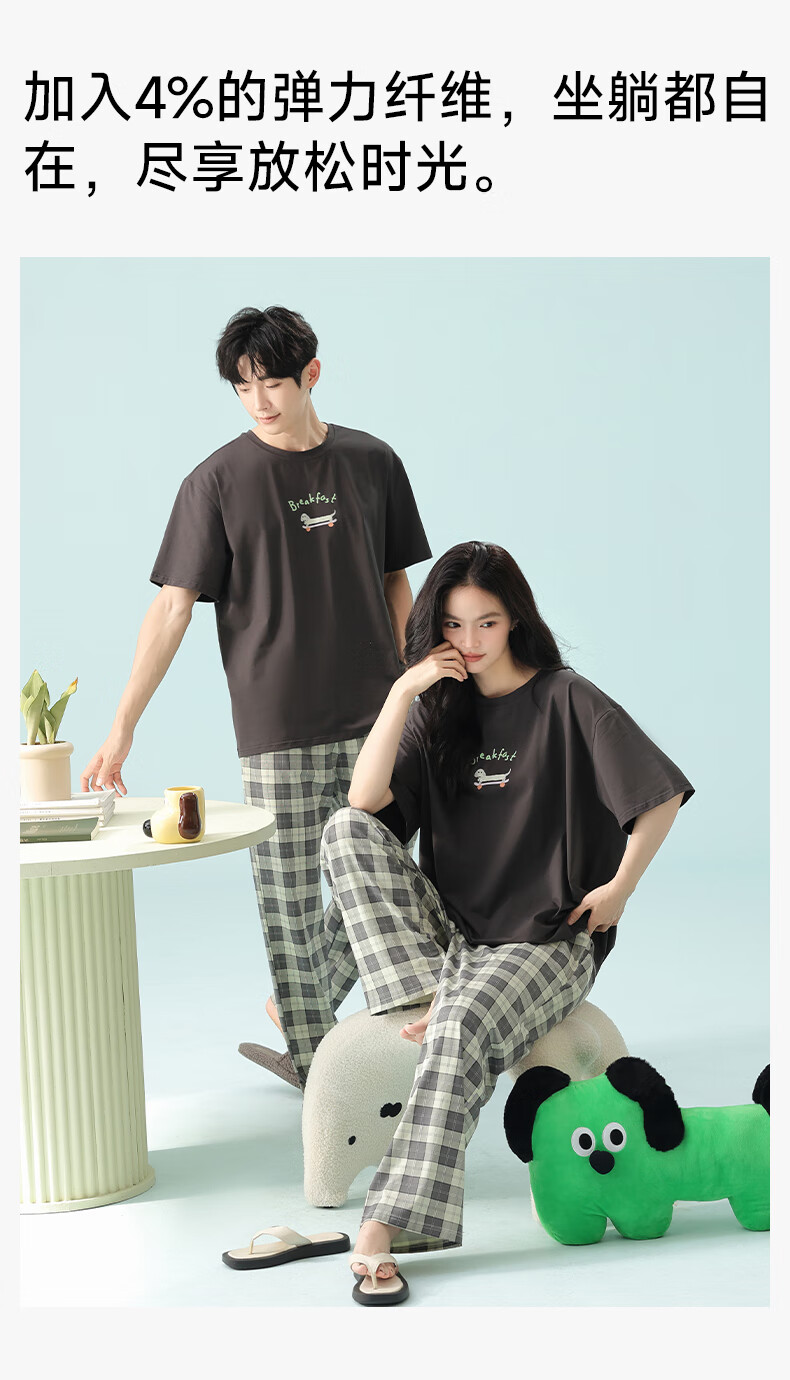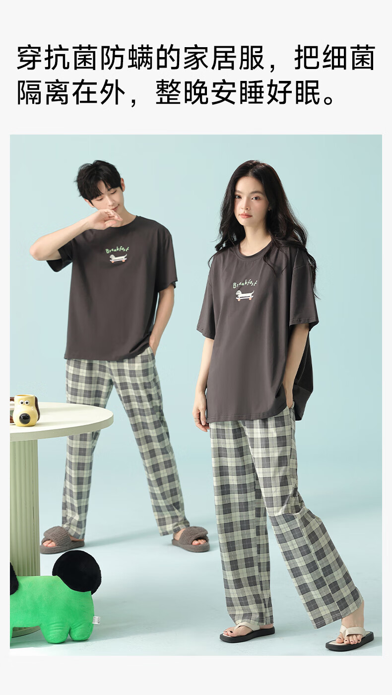 Pure cotton couple pajamas for women antibacterial Xinjiang cotton spring and summer short-sleeved trousers Korean style thin home wear set 5E5141-Men's XL
