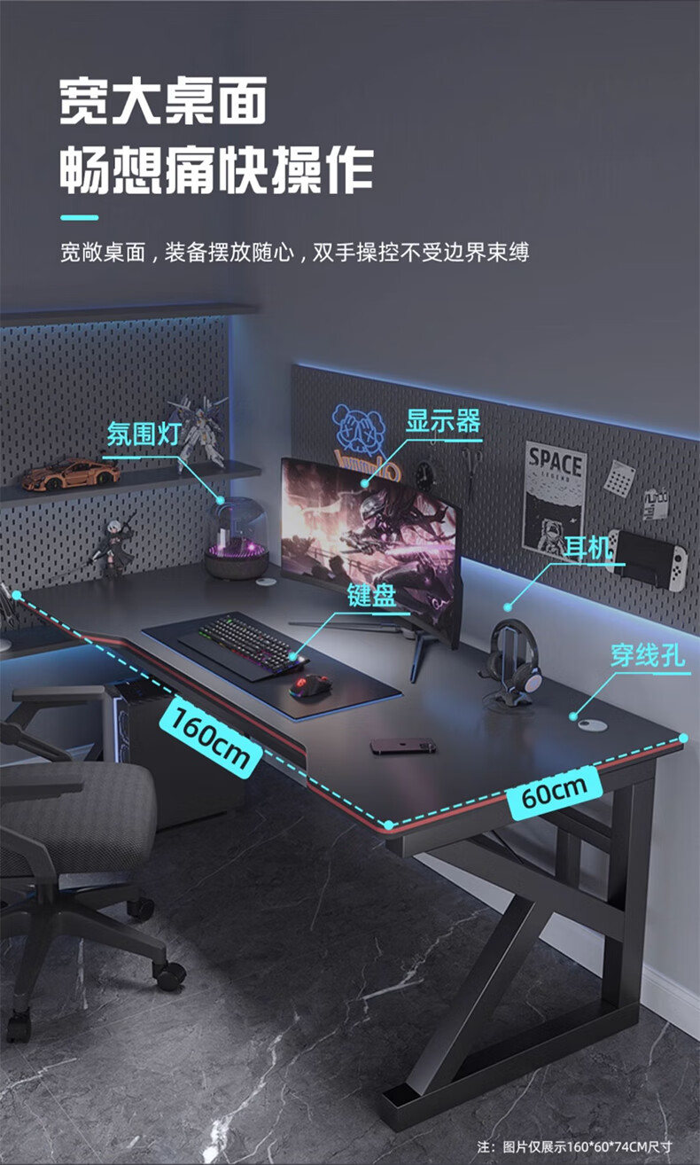 Yuanbinwei computer table desktop e-sports table and chair set combination table office home table study table study desk writing table K-shaped carbon fiber black 120*60 promotional model