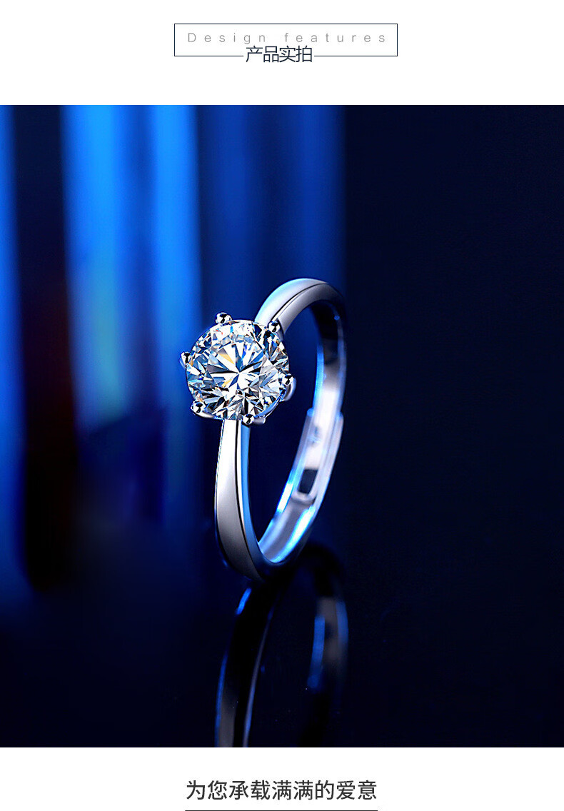 Chili Moissanite Diamond Ring Ring for Men and Women New 1-2 Carat PT950 Platinum Couple Ring Gold Proposal Ring Type A-Female Ring 60 Points + Certificate