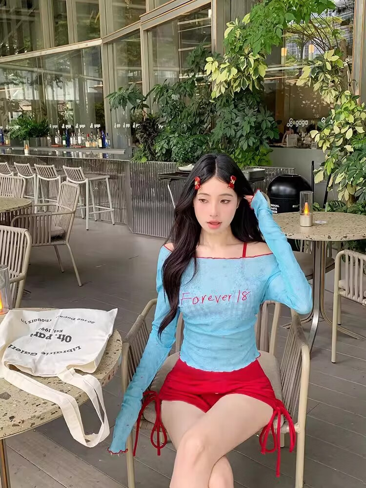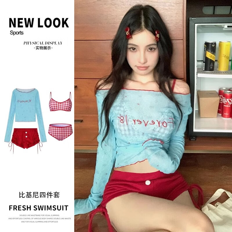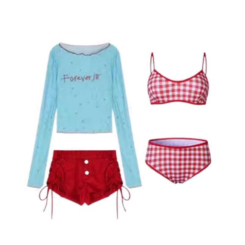 Rindu swimsuit women's split sexy swimsuit cover-up four-piece set new bikini beach swimwear soaking in hot springs to cover the flesh and look slimmer blue and red one size fits all 80-120Jin Jin equals 0.5 kg