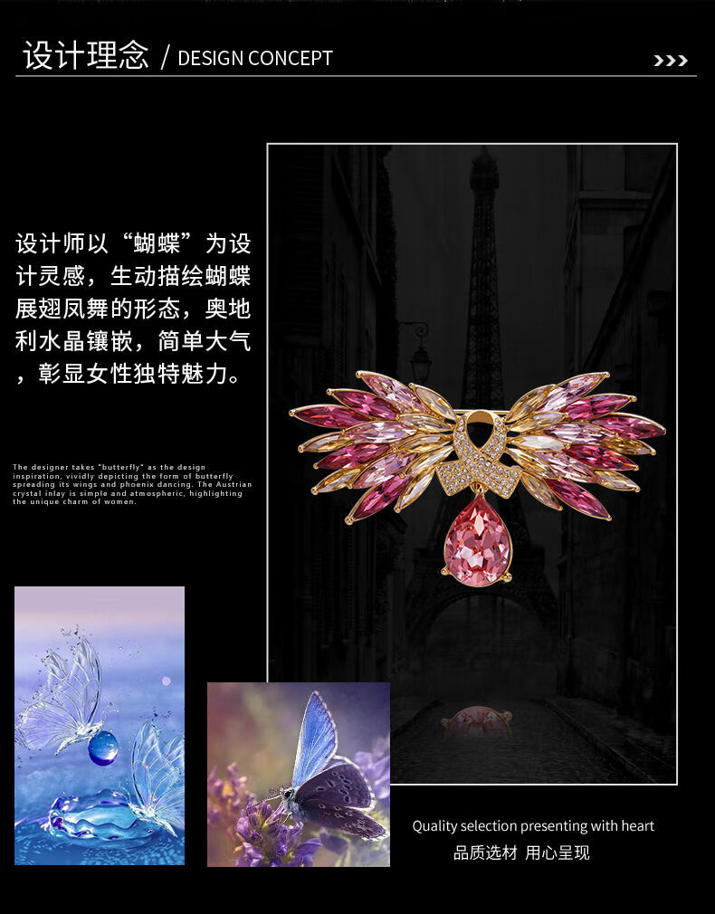 Libiao French eternal elegance butterfly brooch high-end crystal accessories women's lapel pin brooch brooch dazzling color