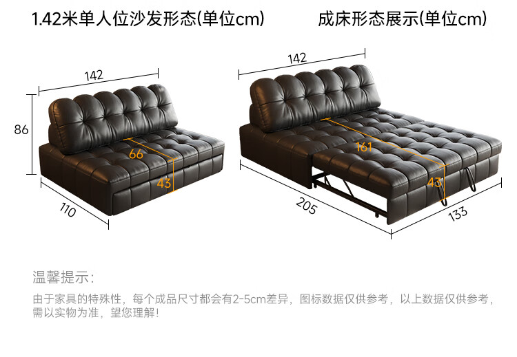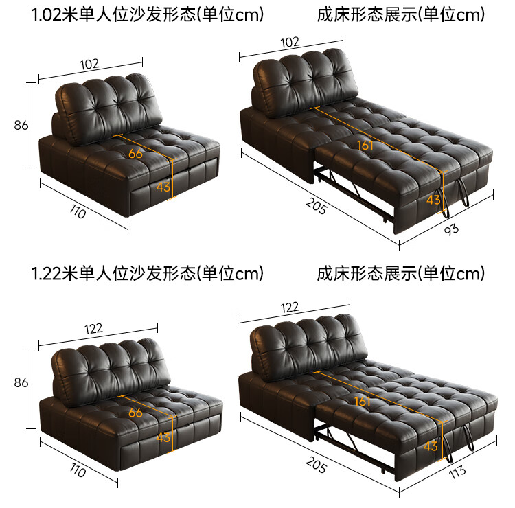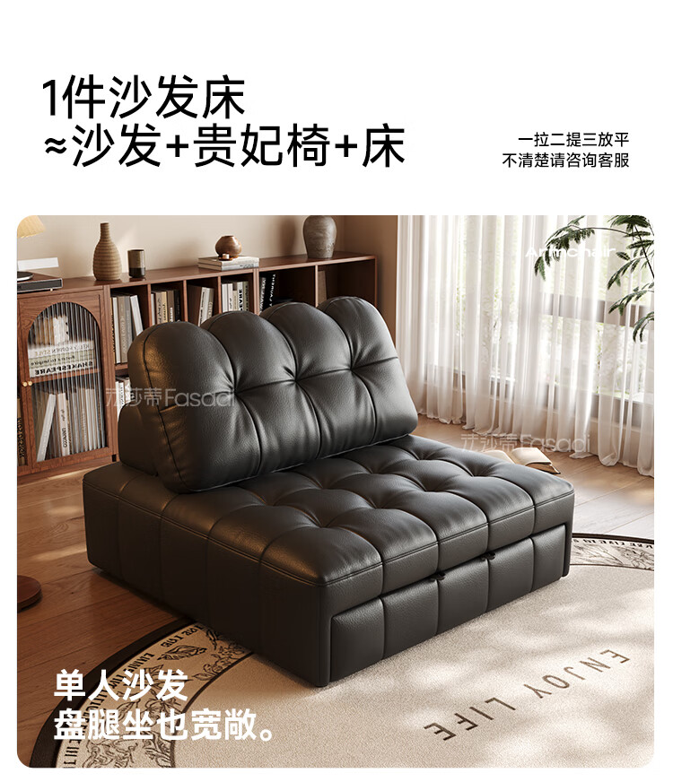 Fasati sofa bed foldable dual-use small apartment living room multi-functional telescopic lazy sofa bed all-in-one dual-use 1.22m single seat Italian thickened ecological cowhide powder-free 45D