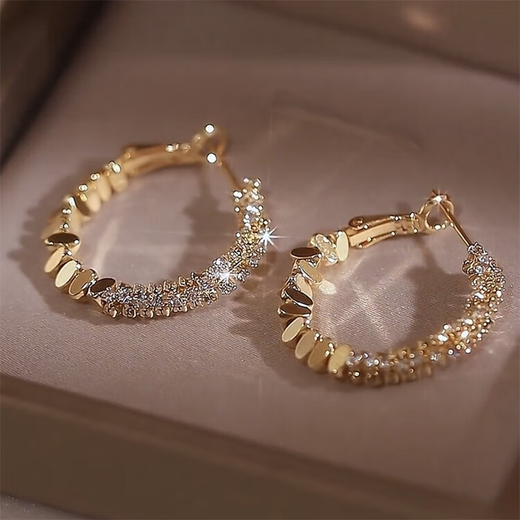 YIZUN. CHOMEL Broken Silver Zircon Earrings 2025 New Hot Style Niche Light Luxury High-end Earrings for Round Faces Temperament Earrings for Women Broken Silver Zircon Earrings Silver Needles