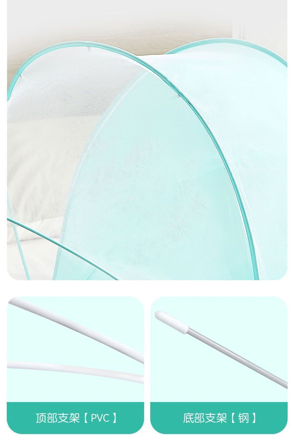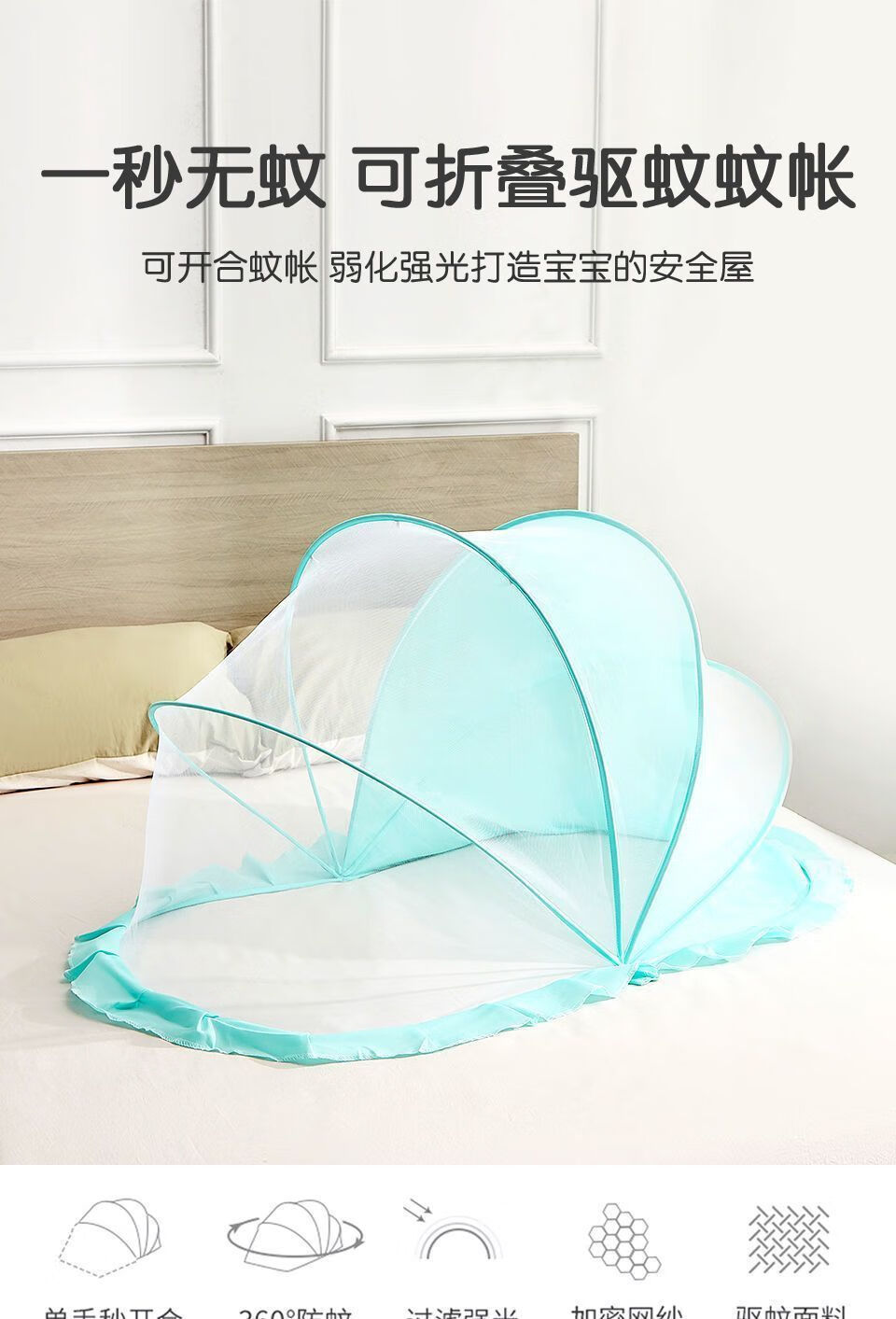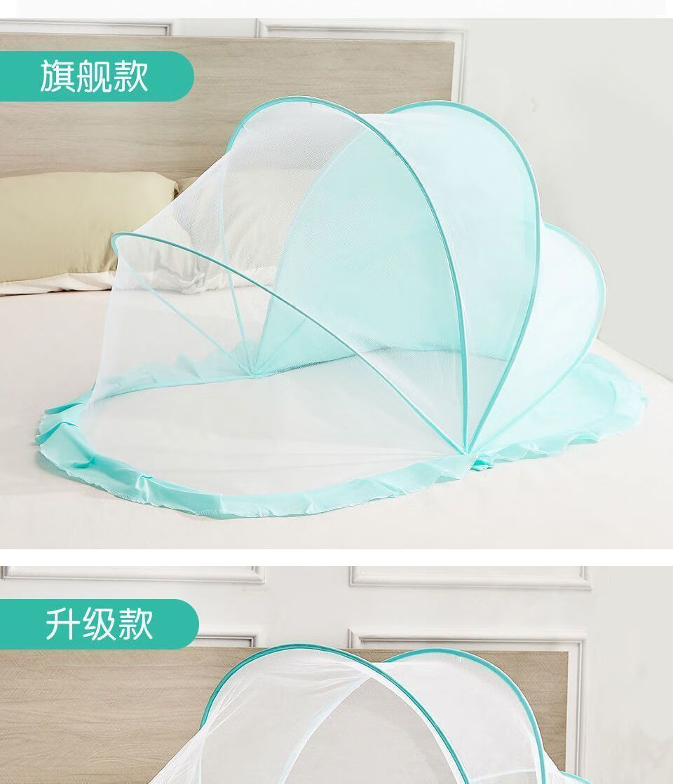 Vinoa's new crib mosquito net, baby anti-mosquito cover, anti-fall, foldable home blackout mosquito net, bottomless baby mosquito net, upgraded mesh style, tea green anti-mosquito cloth, small size 92*47*45cm, suitable for 0-1.5 years old