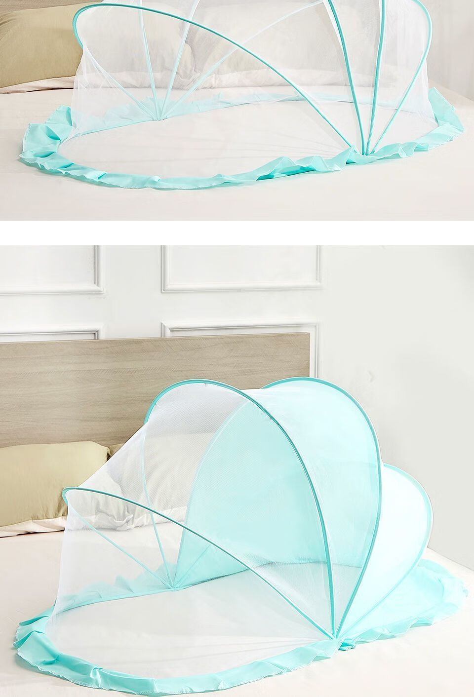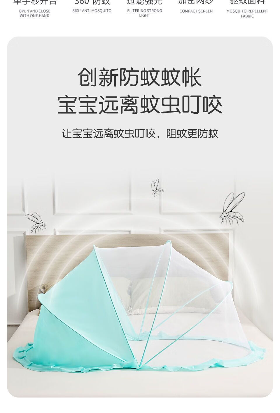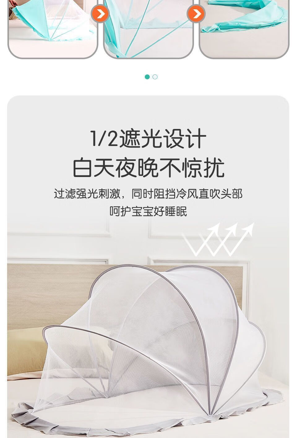 Vinoa's new crib mosquito net, baby anti-mosquito cover, anti-fall, foldable home blackout mosquito net, bottomless baby mosquito net, upgraded mesh style, tea green anti-mosquito cloth, small size 92*47*45cm, suitable for 0-1.5 years old
