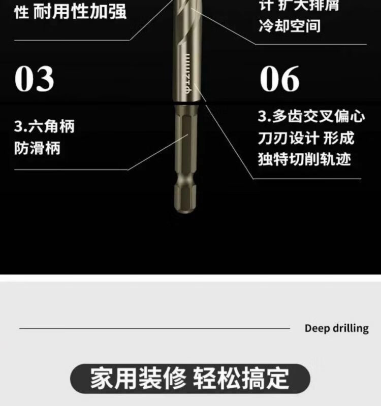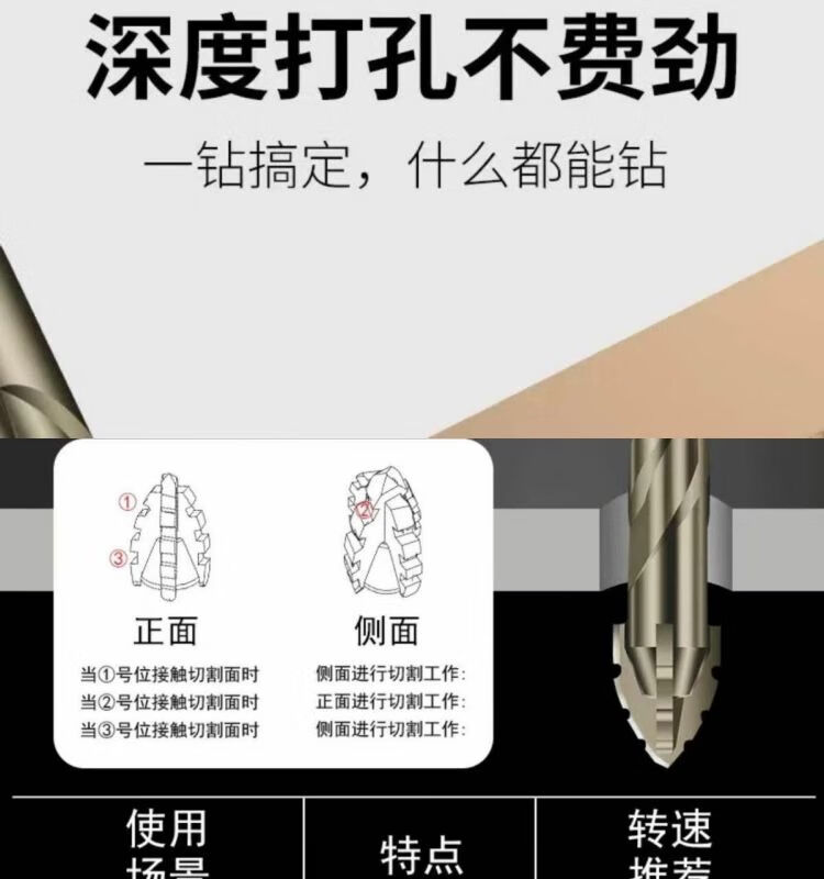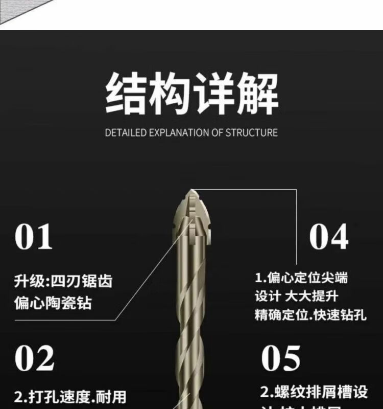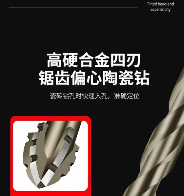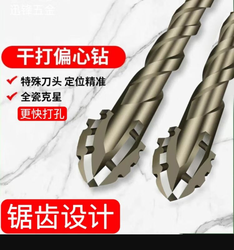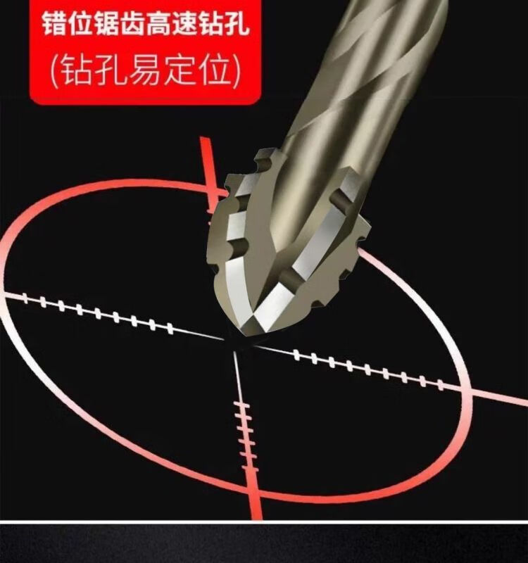 Stainless steel drill bit 316 special new super hard tungsten steel serrated eccentric drill hand electric drill cross hexagonal handle concrete glass full ceramic tile opening quick drilling 6+8+10+12 four (super hard and super sharp) new four blades better to use