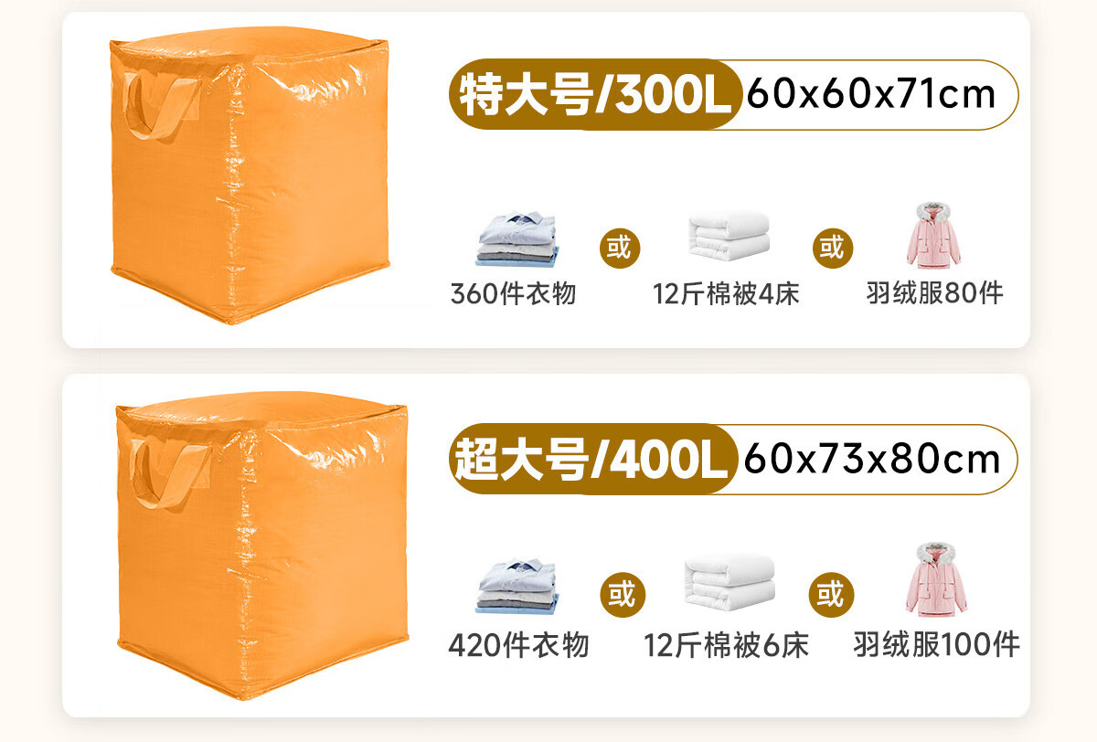 Large Capacity Moving Packing Bag Carton Artifact Pack Cotton Quilt Organizing Special Bag Clothes Large Luggage Storage Bag 3 Pack Yuanqi Orange 400L Save 7 Yuan / Damage Compensation Guaranteed